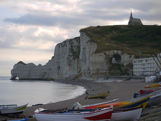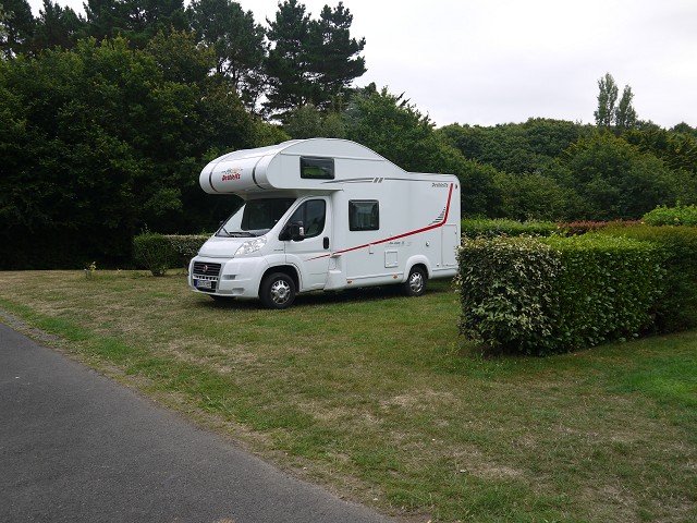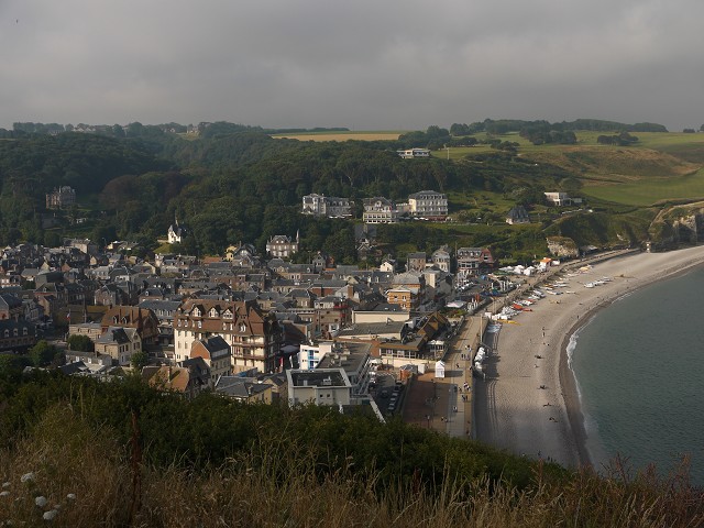 Um 7 Uhr klingelte unser Wecker und wir beschlossen erst einmal eine Dusche zu nehmen. Die Sanitäranlagen auf dem Platz sind echt top, ziemlich neu und gut in Schuss. Auch die Dauercamper begrüßten uns schon sehr freundlich. Der Sturm hatte 2 ihrer Partyzelte beschädigt. Sie fragten besorgt, ob wir durch ihren Krach in der Nacht wach geworden wären. :o) Sascha hatte Kopfschmerzen und wollte erst einmal nichts essen. So frühstückte Jana eine Kleinigkeit und dann fuhren wir in den Ort, wo wir an der Apotheke noch einmal stoppten, um Kopfschmerztabletten zu kaufen. Bald ging es Sascha auch wieder besser. Wir fuhren die Landstraße bis Pirmasens und dann weiter auf der Autobahn bis zum Grenzübergang bei Saarbrücken. Frankreich! Nun ging es weiter über Metz bis Reims, wo wir unsere Mittagspause einlegten und überbackene Gnocchi mit Tomaten futterten. Danach ging es stundenlang durch recht eintönige Landschaft über St.-Quentin, Amiens und vorbei an Rouen bis fast Le Havre. Kurz vorher bogen wir ab auf die Landstraße nach Fécamp. Nun wollten wir uns einen Campingplatz zwischen Fécamp und Étretat suchen. In Yport fanden wir einen sehr schönen direkt an der Steilküste und traumhaften Blick aufs Meer. Dieser war jedoch leider schon besetzt. Die Rezeption gab uns jedoch die Adresse eines weiteren in Les Loges. Dort checkten wir ein. Wir beschlossen noch einen Spaziergang in Richtung Meer zu machen. Wir kamen bis Vattetot-sur-Mer und sahen, dass es von hier doch noch recht weit zur Küste war. Zudem zogen am Himmel dunkle Wolken auf und in der Ferne regnete es schon. Daher drehten wir um. Kurz bevor wir den Campingplatz erreichten, hatte uns der Regen doch eingeholt. Aber nach ein paar Tropfen war schon wieder Schluss.