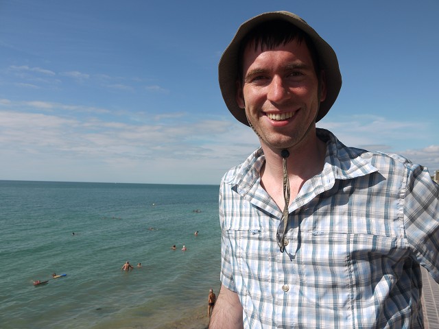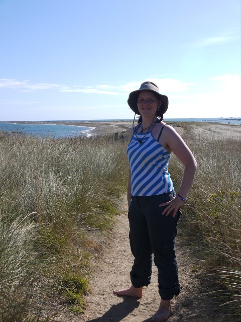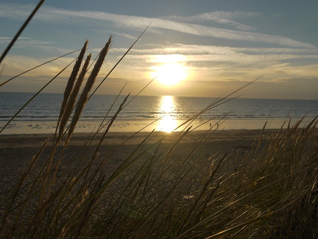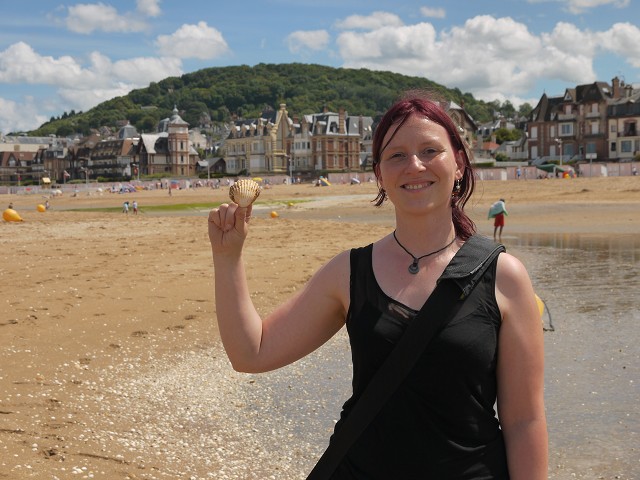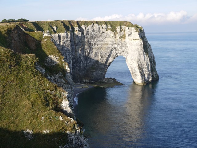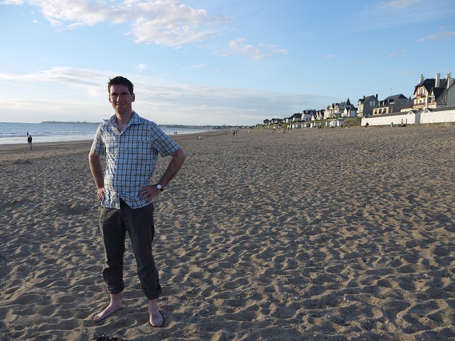 Halb sieben klingelte unser Wecker, denn wir wollten früh aufbrechen nach Étretat, um noch einen Parkplatz zu bekommen. Wir frühstückten eine Kleinigkeit und fuhren dann die 9 km bis Étretat. Etwas oberhalb des Ortes fanden wir einen guten Parkplatz und spazierten dann in den Ort und erst einmal an die Strandpromenade. Hier erhaschten wir auch den ersten Blick auf den "Rüssel" - den Felsbogen, der aussieht wie der Rüssel eines trinkenden Elefanten. Dann erklommen wir den Felsen darüber, von wo man einen schönen Blick auf den Ort und den Ärmelkanal hat. Hier hüpften um diese frühe Uhrzeit sogar noch kleine Hasen über den Weg und den angrenzenden Golfplatz. Dann stiegen wir die Treppen wieder hinab und kauften uns in einer Boulangerie 2 Apfeltaschen und etwas zu trinken. Damit setzten wir uns an den Strand und nahmen unser zweites Frühstück ein. Gut gestärkt erklommen wir dann den zweiten Berg, auf dessen Rücken eine kleine Kapelle über dem Ort thront. Von hier sieht man den Felsbogen erst in voller Schönheit. Gegen 10 Uhr verließen wir Étretat Richtung Süden, nachdem wir noch ein paar Lebensmittel, insbesondere ein leckeres Baguette, eingekauft hatten. Hinter Le Havre überquerten wir die Seine kurz vor Ihrer Mündung über die Pont de Normandie. Diese Schrägseilbrücke ist wirklich spektakulär und wirkt trotz Ihrer Größe grazil. Wir hielten auf der anderen Seite an um ein paar Fotos zu schießen und fuhren dann weiter. Vor uns auf der Autobahn bot sich uns ein seltsam ungewöhnlicher Anblick: Aus einem heruntergelassenen Beifahrerfenster lachte uns ein nackter Hintern an - bei Tempo 100 eine sehr verrückte Tat. Auf einer Landstraße fanden wir einen Obsthändler, bei dem wir süße Pfirsiche und eine Melone kauften. Bald darauf erreichten wir Houlgate. Dieser typische Badeort hat einen riesigen breiten Strand, der sich bei Ebbe ewig zurückzieht. Wir plantschten mit den Füßen im Wasser und bummelten noch etwas durch den Ort. Dann ging es weiter bis Granville. Die Altstadt ist auf einem Felsen im Meer erbaut, war jedoch ruhiger als wir erwartet hatten. Hier stehen fast nur Wohnhäuser. Das Leben tobt dagegen in der Unterstadt bzw. an der Strandpromenade. Dennoch fanden wir kein richtiges Fischrestaurant und so fuhren wir die Küstenstraße noch ein wenig weiter bis Jullouville. Wir folgten den Schildern bis zu einem Campingplatz in Boullion, der klein und gemütlich ist. Wir checkten ein und fuhren dann noch einmal in das Städtchen, wo wir in einem Restaurant einkehrten, was uns der Platzwart des Campingplatzes empfohlen hatte. Jana bestellte einen Topf Miesmuscheln und Sascha eine Gallette mit Pilzen und Tomate. Hmmmm, lecker!! Danach schlenderten wir noch ein wenig am Strand entlang. Die Sonne ging schon langsam unter. Hier ist es einfach herrlich!