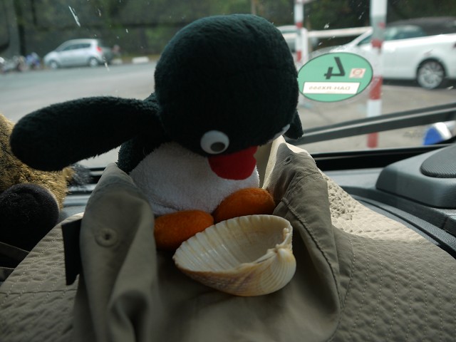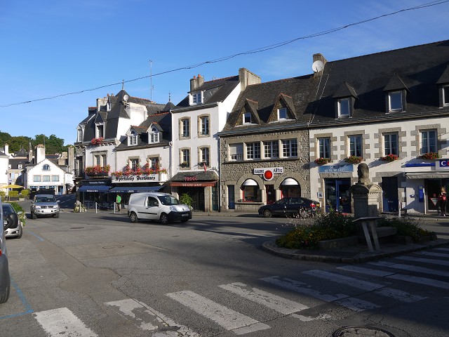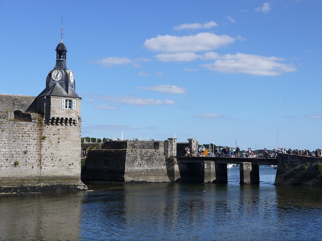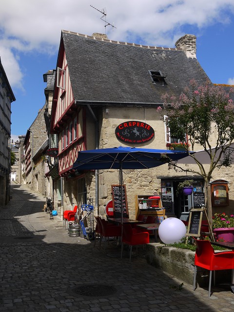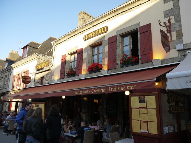 Halb 9 Uhr holten wir unsere Croissants an der Rezeption ab und frühstückten dann einmal draußen in der Morgensonne, denn heute war es endlich einmal schön am Morgen. Dann tuckerten wir in Richtung Morgat, um dort die berühmten Höhlen zu besichtigen. Allerdings kamen wir nicht weit, denn bald steckten wir im Stau. Kurzentschlossen kehrten wir um und fuhren stattdessen nach Quimper, wo wir am Bahnhof einen guten Parkplatz fanden. Dann stiefelten wir in das Städtchen und besichtigten zuerst die Kathedrale. Diese hat eine ungewöhnliche Form, denn der Chor ist im Vergleich zum Kirchenschiff abgeknickt. Die Kirche sah aus wie frisch renoviert, denn alles war top in Schuss. Dann bummelten wir durch das Städtchen und shoppten ein wenig. Am Nachmittag suchten wir uns ein kleines Restaurant und Sascha aß einen Salat und Jana einen Mini-Flammkuchen. Dann kauften wir noch ein Baguette und gingen zurück zum Auto. Weiter ging es dann nach Cancarneau, wo wir wieder Glück hatten und auf Anhieb einen Parkplatz fanden. Dann schlenderten wir in die Altstadt, die wie St. Malo komplett von einer Stadtmauer umgeben ist - im Vergleich aber deutlich kleiner ist. Die kleinen Häuschen wirken ganz pittoresk, wenn man sich einmal die Heerscharen von Touristen wegdenkt. In einem kleinen Laden fanden wir eine hübsche Lampe, an der wir nicht vorbei kamen. Mit ihr im Gepäck suchten wir uns dann ein kleines Fischlokal und probierten zum ersten Mal in unserem Leben Austern. Fazit: Bähhh! Dafür entschädigte uns der Hauptgang, wo wir ein leckeres Thunfischsteak mit Kartoffeln und einer leckeren Tomatensauce aßen. Sehr lecker. Zum Dessert hatten wir noch eine Art Jogurt mit Erdbeersauce. Gut gesättigt gingen wir zurück Richtung Auto und kamen noch an der Brasserie "L'Amiral" vorbei, die eine Rolle im Buch "Bretonische Verhältnisse" spielt. Wie der Kommisar aus dem Buch wollten wir hier gerne einen Café trinken, aber die Brasserie hatte nun bereits geschlossen. Also fuhren wir weiter bis Pendruc, wo wir direkt in Strandnähe einen Stellplatz für die Nacht fanden.