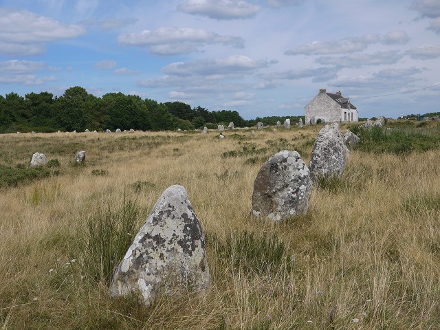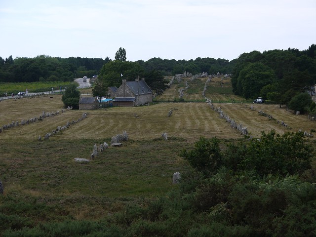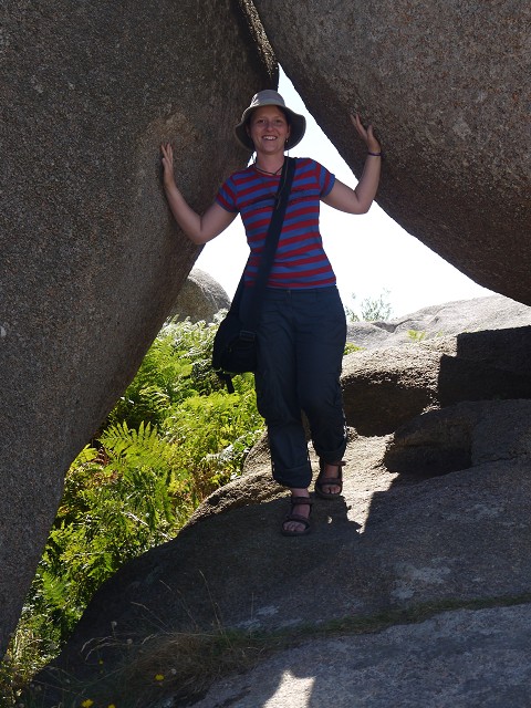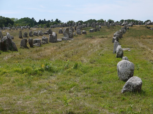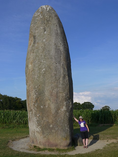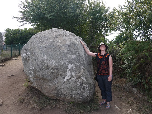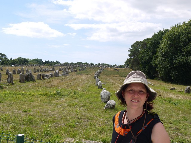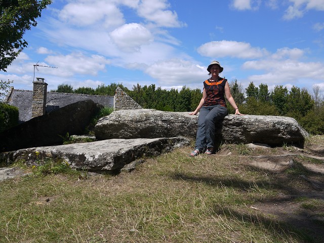 Heute standen wir etwas früher auf, so dass wir 8 Uhr abfahrtbereit waren. Wir fuhren die letzten Kilometer bis Pont Aven. So früh wirkte der kleine Ort noch verschlafen und pittoresk. Den Marktplatz hatten wir uns anders vorgestellt durch das Buch "Bretonische Verhältnisse". Hier donnert die Hauptstraße vorbei uns es ist alles andere als ruhig. Das Hotel in dem die Künstler um Paul Gaugin gewohnt hatten, hat auch schon einmal bessere Zeiten gesehen und sieht recht runtergekommen aus. In einem der Cafés tranken wir dann erst einmal eine heiße Schokolade und genossen die Sonne. Dann schlenderten wir in eine Gasse, die zum Hafen führte und hier waren lauter Marktstände aufgebaut. Wir schauten ein wenig und bummelten weiter. Auf dem Rückweg kauften wir dann eine kleine Salami und jeweils eine Schale Erdbeeren und Himbeeren. Außerdem kauften wir noch 2 Stückchen Kuchen bei 3 jungen Mädels, die durch den Verkauf eine Klassenreise finanzieren wollten. Der war zwar am Ende teilweise nicht so lecker, aber wenigstens kam das Geld ja einem guten Zweck zu Gute. Nun füllte sich der Ort merklich und immer mehr Touristen kamen an. Der ganze Zauber des Morgens war somit dahin. Wir beschlossen weiterzufahren und gerieten erstmal promt in einen dicken Stau aus dem Ort hinaus. Wir bogen ab auf eine kleine Nebenstraße und kamen dann doch schneller voran. Unser nächstes Ziel sollte nun Carnac sein mit seinen berühmten Steinreihen. Auf der Schnellstraße kamen wir gut voran, doch auf den letzten Kilometern zum Ort steckten wir erneut im Stau. Wir beschlossen umzukehren und erst einmal ein Stück weiter nach Locmariaquer zu fahren, wo ebenfalls einige Megalithen und Dolmen zu besichtigen sind. Wir besichtigten die Anlage Table des Marchand mit dem ehemals größten Menhir der Bretagne (21 Meter), der jedoch inzwischen in 4 Teile zerbrochen ist und auf dem Boden liegt. Dadurch sieht er ein wenig wie ein in Scheiben geschnittenes Baguette aus. Zudem gab es 2 Grabanlagen zu sehen und in eines konnte man auch hineinlaufen. Außerhalb des eingezäunten Geländes besichtigten wir ein weiteres Steinzeitgrab - den Dolmen du Mané Lud. Dieser ist frei zugänglich ohne Eintritt und dennoch überhaupt nicht überlaufen. Hier konnten wir ganz in Ruhe die Anlage inspizieren, die wir noch faszinierender als den Table des Marchand fanden. Nun starteten wir einen zweiten Anlauf nach Carnac und kamen diesmal super durch. Auch einen Parkplatz fanden wir auf Anhieb. Dann schauten wir uns die Steinreihen an. Diese sind jedoch inzwischen eingezäunt, da die Besucher sonst alles niedertrampeln und die Steine sogar schon umsturzgefährdet waren. So richtig begeistert waren wir nicht. Klar, es ist schon rätselhaft wie diese Steine hierher kommen und wer sie wohl aufgestellt haben mag. Aber der Ort ist so überlaufen von Touristen, liegt mitten in der Prallen Hitze und die Wege stauben nur so. Wir fuhren also weiter in Richtung Rennes. Cirka 30 Kilometer vor der Stadt bogen wir ab von der Schnellstraße zum Forêt de Brocéliande. Hier spielt ein Großteil der Artussage und dem Zauberer Merlin. Diese Wälder wollen wir morgen noch ein wenig erkunden. Bei Concoret fanden wir einen hübschen Campingplatz mit viel grün, der auch nicht so überfüllt ist. Hier kochten wir unser Abendbrot - Chili mit dem restlichen Ebly.