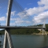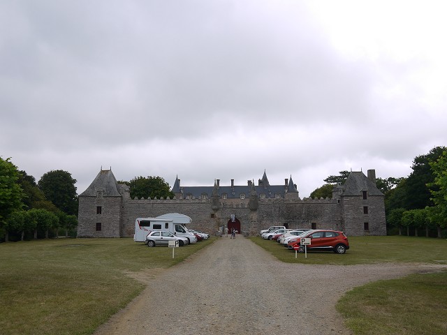 Zum Frühstück hatten wir 2 Pain au Chocolat bestellt. Die holten wir um 8 Uhr an der Rezeption ab und frühstückten dann gemütlich im Camper, da es draußen mal wieder nieselte. Dann fuhren wir einen endlos langen gebogenen Strand entlang und weiter bis Morlaix. Dort parkten wir am Hafen und schlenderten dann die restlichen paar Meter in das Städtchen. Auf dem Weg kauften wir ein frisches warmes Baguette, welches wir eigentlich für später aufheben wollten, aber es duftete so verführerisch, dass wir es gleich verputzten. Dann schauten wir uns die kleinen Häuschen und Gässchen an, aber da heute Sonntag ist, war nicht sonderlich viel los. Dann kamen wir an der Maison de la Reine Anne vorbei, wo einmal die Königin Anne übernachtet hatte. Allerdings war das Museum noch geschlossen. Ein paar Schritte weiter entdeckten wir allerdings ein weiteres altes Adelshaus (Maison à Pondalez), welches wir ausgiebig besichtigten. Überraschend fanden wir, dass im inneren ein Raum 4 Stockwerke hoch war mit einem riesigen Kamin. Zudem ragte es fast 2 Meter über die Straße, so dass in den oberen Stockwerken die gegenüberliegenden Häuser zum Greifen nahe erscheinen. Weiter ging es dann bis Saint-Thégonnec, wo wir den Pfarrbezirk mit seinem Kalvarienberg besichtigten. Unser nächstes Ziel war dann die Pointe de Saint Mathieu am äußersten westlichen Zipfel der Bretagne. Hier steht ein schneeweißer Leuchtturm direkt neben den Ruinen eines alten Klosters, was schon ein merkwürdiger Kontrast ist. Wir bestiegen auch den Leuchtturm und schlenderten über das Gelände. Nun war es bereits 17.30 Uhr und wir beschlossen spontan zur Halbinsel Crozon zu fahren, um dort nach einer Übernachtungsmöglichkeit zu suchen. Auf dem Weg passierten wir die Hängebrücke Pont de Tèregez, die den weltweit größten Bogen zwischen zwei Pylonen besitzt. Sie schwingt sich sehr eleganz über den Fluss. Kurz hinter Telgruc-sur-Mer fanden wir den Campingplatz L'Amorique und buchten eine Nacht. Dann hüpften wir gleich in den Pool, denn dieser hatte nur noch eine dreiviertelstunde geöffnet. Hier gab es sogar eine Rutsche, die wir natürlich auch gleich ausprobierten. Anschließend kochten wir unser Abendessen, eine Gemüsepfanne mit Ebly.