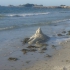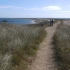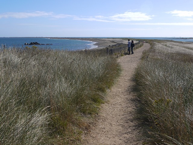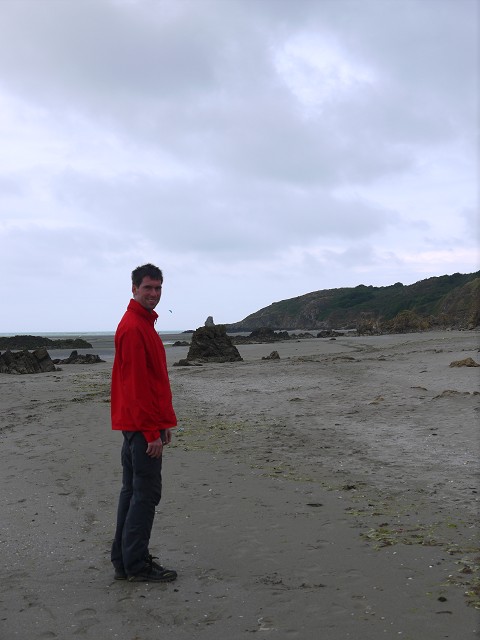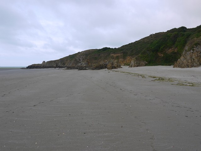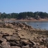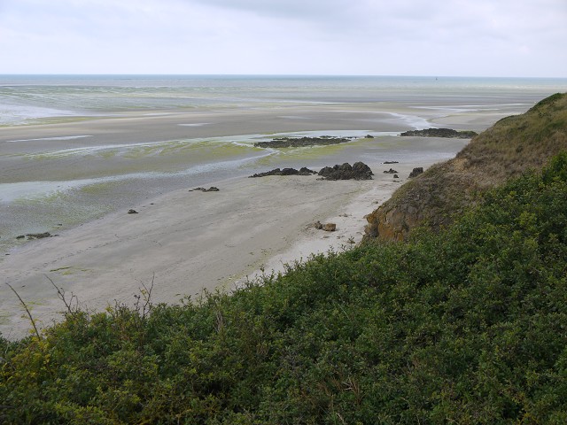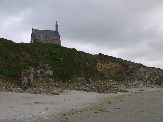 Eigentlich wollten wir heute ganz früh aufbrechen, um eine Wanderung vom Fort la Latte zum Cap Fréhel zu machen. Aber als der Wecker um 6.30 Uhr klingelte, regnete es. Also drehten wir uns noch einmal um und schliefen noch etwas. Gegen 8.30 Uhr schälten wir uns dann aus dem Bett. Draußen nieselte es immer noch etwas. Wir frühstückten und fuhren dann die letzten Kilometer zum Fort la Latte. Der Parkplatz war viertel nach 10 Uhr noch leer, füllte sich jedoch rasch, denn 10 Minuten später öffnete das Fort seine Pforten. Eine Besichtigung wollten wir jedoch nicht machen und schlugen stattdessen den Wanderweg zum Cap Frehel ein. Dieser führt oberhalb der Steilküste entlang durch Heidekraut und Farne. Er bietet einen tollen Blick auf das Meer, den Leuchtturm des Cap Frehel und auf das Fort la Latte. Nach gut einer Stunde kamen wir am Cap an. Leider gab es hier keinerlei Einkehrmöglichkeit und unser Hunger meldete sich schon. Wir genossen also ein wenig den Ausblick vom Cap und kehrten dann den gleichen Weg zurück zum Auto. Dort futterten wir Baguette mit Schinken, Camembert, Weintrauben usw. Gut gestärkt ging es dann weiter nach Saint-Maurice, wo eine kleine Kapelle an der Küste thront. Hier wollten wir eigentlich noch eine zweite Wanderung unternehmen, ließen es dann aber bleiben, weil das Wetter immer noch recht bedeckt war und es durch den Wind heute auch nicht wirklich warm wurde. Stattdessen bummelten wir noch ein wenig durch das Watt vor der Kapelle. In der Ferne sahen wir einige Austernbänke. Zudem wunderten wir uns über einen Bauern, der mit seinem Traktor den Wattboden umpflügte. Später sahen wir ein Schild mit der Erklärung: der Traktor hatte Grünalgen entfernt, die hier den ganzen Strand bedecken. Diese geben komische Gase ab, wenn man auf sie tritt, so dass man durchaus bewusstlos werden kann. Hm, das hatten wir erst gelesen, nachdem wir schon über zahlreiche grüne Schlieren gestapft waren. Nun war es bereits nach 17 Uhr und somit Zeit nach einem Campingplatz Ausschau zu halten. Wir wollten noch ein Stück fahren, um näher an unser morgiges Ziel zu kommen. Über St. Brieuc fuhren wir zur Côte du Goëlo und fanden schließlich den Campingplatz Exotica, der seinen Namen durchaus zu recht trägt. Seine Besitzer wirkten wie ein paar Althippies, rochen nach Alkohol und waren etwas merkwürdig. Der Platz ist dennoch recht hübsch mit großen Bäumen und viel Grün.