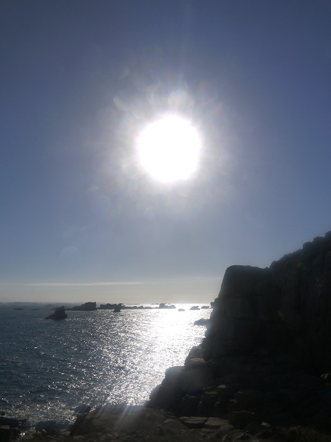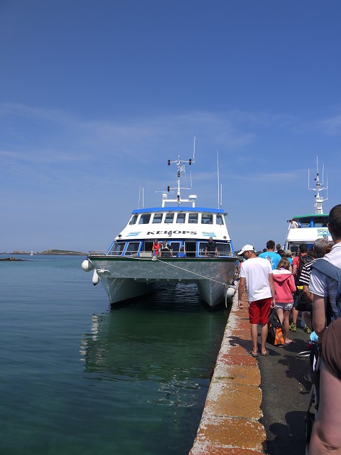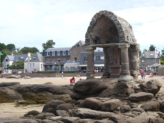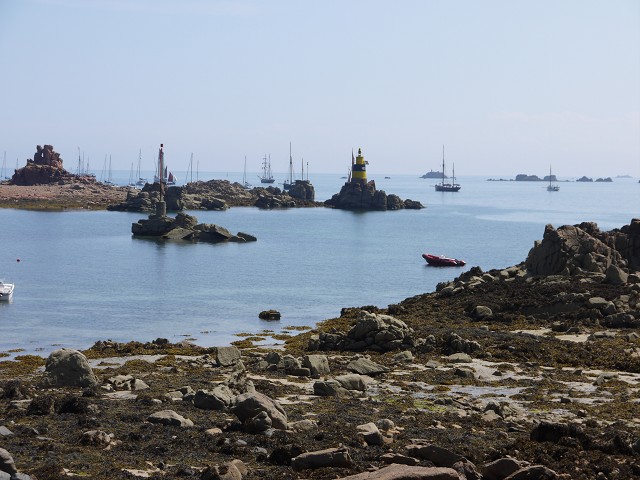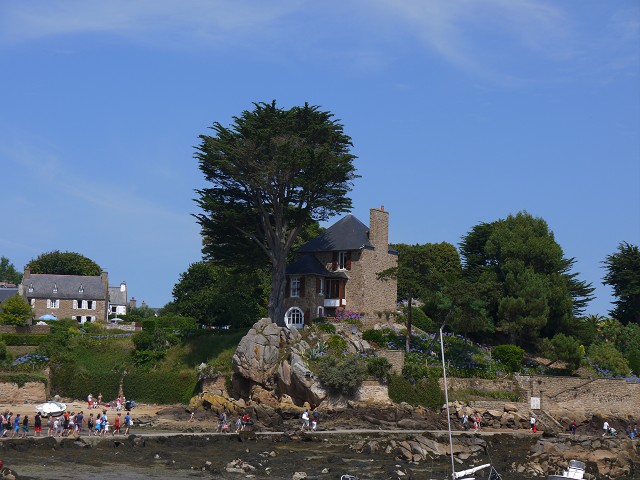 Gegen 6.45 Uhr standen wir auf und gingen erst einmal duschen. Dann frühstückten wir und fuhren dann den Circuit des Falaises - kleine Sträßchen entlang der Küste mit tollen Ausblicken auf das Meer und die Buchten. Gegen 10 Uhr erreichten wir schließlich die Abbaye de Beauport, wo uns die Dame an der Kasse in fließendem Deutsch begrüßte und instruierte. Dann erkundeten wir fast 2 Stunden lang die Ruine und seine Gärten. Überall gab es Infoblätter (auch in Deutsch), so dass wir einiges lernten über das Klosterleben. Der Speisesaal etwa war fast genauso groß wie die Kirche, obwohl die Mönche nur 1 richtige Mahlzeit zu sich nahmen und im Sommer noch ein leichtes Abendbrot (im Herbst nur 1x Essen am Tag!!). Nach der Französischen Revolution mussten sie dann das Kloster aufgeben und es verfiel zusehends. Die heutigen Reste werden jedoch gut gepflegt, so dass die Ruine ihren romantischen Charme behält. Für uns ging es nun weiter bis zur Île de Bréhat. 13.30 Uhr setzten wir mit der Fähre von l'Arcouest über und erreichten die Insel nach nur 10-minütiger Fahrt. Am Hafen liehen wir uns dann 2 Fahrräder und wollten losdüsen. Das ist leichter gesagt denn getan, denn die Wege sind bereits voll mit Touristen und es ist nicht leicht mit dem Fahrrad hier noch durchzukommen. Als erstes steuerten wir die Chapelle Saint-Michel an, die man gar nicht verfehlen kann, denn sie throhnt auf einem Hügel der weithin sichtbar ist. Weiter ging es dann bis zum Leuchtturm Sémaphore. Wir dachten, dass die Besucherströme hier oben dann etwas weniger werden und wollten noch etwas weiter in den Norden der Insel fahren. Aber pustekuchen - auch hier oben wimmelte es auf den Wegen nur so von Touris und so fuhren wir weiter Slalom und riefen alle Nase lang "Pardon", denn eine Klingel hatten unsere Räder nicht. Sie hatten nicht einmal eine Fahrradkette, sondern nur eine Art "Gummi-Keilriemen", weshalb sie auch recht schwergängig waren - wie im übrigen auch die Bremsen. Davon ließen wir uns jedoch nicht abhalten und fuhren weiter in Richtung Phare du Paon. Im "Le Paradis Rose" kehrten wir ein und schleckten ein Eis. Dann kehrten wir um und kauften ein paar Meter weiter 2 leckere Brote, die hier frisch gebacken werden. Ein Nussbrot packten wir ein und ein Schokobrot futterten wir als Wegzehrung gleich. Langsam ging es dann zurück in Richtung Hafen, wo wir um 17.45 Uhr mit der Fähre zurück aufs Festland fuhren. Als wir ausgestiegen waren und den Pier hinaufgelaufen waren, sahen wir, dass unsere Landungsstelle nun bereits unter Wasser war und die Boote deutlich höher anlandeten. Es ist schon faszinierend wie sich das gesamte Leben in der Bretagne nach dem Meer richtet. Mit unserem Wohnmobil ging es dann weiter bis nach Sillon de Talbert. Im Supermarkt kauften wir uns noch Nudeln und Tomatensauce und checkten dann auf dem Campingplatz Port La Chaine ein. Der hat sogar einen Pool, der uns gerade recht kam. Da er nur bis 20 Uhr genutzt werden darf, hüpften wir gleich in unsere Badesachen und plantschten eine Runde. Dann kochten wir unsere Ravioli und ließen den Abend gemütlich ausklingen.