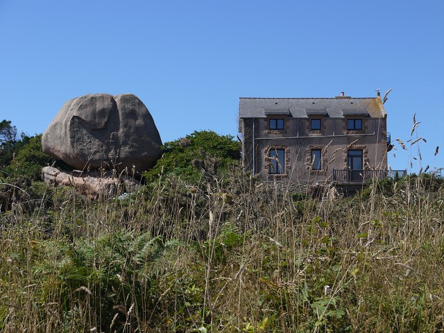 Von Port Blanc war es heute nur noch ein Katzensprung bis Trestraou (ein Vorort von Perros-Guirec), von wo wir die rosa Granitküste erkunden wollten. Gegen 9.30 Uhr erreichten wir den Ort und liefen dann den "Sentier des Douaniers" - einen ehemaligen Schmugglerpfad entlang bis Ploumanac'h. Die rosa Murmeln, die hier überall herum liegen sind wirklich beeindruckend und teilweise hausgroß. In vielen sieht man mit etwas Fantasie Gegenstände und Lebewesen wie ein Flasche, Austern, Gesichter und diverse Tiere. Bis etwa 15.30 Uhr erkundeten wir die Küste und kehrten dann zurück in Trestraou in ein Lokal ein, um Muscheln zu essen. Sascha hatte einen großen Topf mit klassischer Weißwein-Marinade und Jana à la Provencale mit Tomaten und Basilikum. Lecker! Dann fuhren wir mit unserem Camper noch bis St.-Michel-en-Grève, wo wir einen sehr schönen Campingplatz fanden. Der ist sehr großzügig angelegt mit viel grün, einem Pool, einer (leider schlecht gepflegten) Minigolfanlage, Trampolins, Basketballplatz usw. Wir probierten die Minigolfanlage aus, waren aber mit den krummen und bröckelnden Bahnen nicht sonderlich glücklich. Also hüpften wir in unsere Badesachen und stürmten den Pool. Das Abendbrot fiel heute einmal aus, denn wir wahren noch so voll von unseren Muscheln.