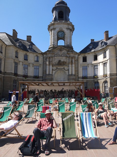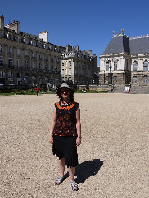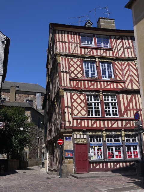 Unser Wecker klingelte heute nicht, da wir vergessen hatten ihn zu aktivieren. Kurz vor 8 Uhr wachten wir dann auf und fuhren nach dem Frühstück als erstes zur Eglise du Graal in Tréhorenteuc. Nach kurzem Stop ging es weiter zum Tal ohne Widerkehr, wo wir erneut im Eilverfahren den goldenen Baum besichtigten. Entgegen dem Namen des Tales kehrten wir zu unserem Auto zurück. Weiter ging es dann zum Château de Trécesson, einem hübschen Wasserschloss, dass man jedoch nur von außen besichtigen kann. Es spiegelte sich schön im Wasser wider. Wir setzten unsere Fahrt fort durch den Wald von Brocéliande bis nach Paimpont. Dort besichtigten wir die Abbaye de Paimpont und spazierten auch noch ein Stück um den See bis zur Grotte Notre-Dame de Paimpont. Unterwegs hat man einen schönen Blick auf die Abbaye über den See. Unsere Zeit erlaubte leider keine weiteren Besichtigungen, denn wir wollten heute noch nach Rennes und ein gutes Stück darüberhinaus in Richtung Elsass fahren. Also kehrten wir in Paimpont noch in eine kleine Creperie ein für einen kleinen Snack zwischendurch. Dann ging es auf nach Rennes. Hier hatten wir Glück und fanden einen Parkplatz direkt am Rande der Altstadt bei den Markthallen. Zuerst ging es durch einige kleine Gässchen mit hübschen Fachwerkhäusern und schließlich erreichten wir das klassizistische Zentrum der Stadt mit dem beeindruckenden Justizpalast, der Oper und dem Rathaus. Vor dessen Toren waren eine Reihe Liegestühle aufgestellt, in denen wir kurz verweilten und das Flair der Stadt genossen. Dann bummelten wir ein wenig durch das LaFayette-Kaufhaus und besichtigten schließlich die Kathedrale St. Pierre. Es war nun kurz vor 16 Uhr und wir beschlossen weiterzufahren, um morgen nicht die gesamte Strecke ins Elsass zurücklegen zu müssen. Auf der Autobahn ging es Richtung Le Mans und dann etwa 100 km Landstraße bis Orléans, was sich endlos hinzog. Gegen 20 Uhr waren wir endlich wieder auf der Autobahn und beschlossen noch bis Troyes zu fahren und hier auf einem Rastplatz unser Nachtlager aufzuschlagen. 22.30 Uhr erreichten wir den Platz endlich, stellten unseren Camper zwischen ein paar LKWs und begannen unser Abendbrot zu kochen (Ravioli mit Tomatensauce). Allerdings brummte in der Nähe ein Generator so laut und brachte zudem das halbe Auto zum Erzittern, so dass wir hier unmöglich schlafen konnten. Daher beschlossen wir noch ein Stück weiter zum nächsten Parkplatz zu fahren, den wir nach weiteren 25 km endlich erreichten. Hier war endlich Ruhe und wir sanken müde in unsere Schlafkoje im Alkhoven.