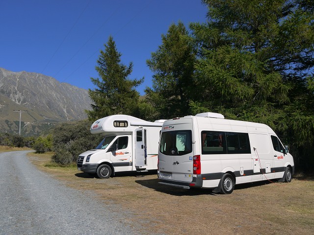 Aufgrund des Jetlags waren alle früh munter und versammelten sich kurz vor acht zum Frühstück. Anika durfte im Hochstuhl sitzen und wurde von allen betüdelt. 9.15 Uhr holte uns ein Shuttle ab und brachte uns zu Apollo Camper in der Nähe des Flughafens. Die Übernahme der beiden Camper dauerte bis nach Mittag. Dann ging es erst einmal los zum Einkaufen von Lebensmitteln. Im Supermarkt »New World« trennten wir uns in Grüppchen, um möglichst effizient alles für Frühstück, Mittag und Abendessen zusammenzusammeln. Kaffee wurde zu einer Herausforderung, da es keine Filter oder Maschinen gab. Statt dessen musste es löslicher Kaffee tun. Jana war experimentierfreudig und griff beherzt in das Regal für Babynahrung. Wir waren gespannt, wie das der kleinen Maus schmecken würde. Passend, dass es gerade Mittagszeit war. Wir kehrten in eine Taverne im gleichen Gewerbegebiet ein und ließen uns Fish & Chips, Burger, Gourmet Pie und Flat Bread bringen. Uns schmeckte es, doch Anika war nur begrenzt begeistert von ihrem Essen, das viele Stückchen enthielt. Nach dem Essen sahen wir zu, dass wir Land gewannen und fuhren auf dem State Highway 1 gen Süden. In Ashburton machten wir eine Pause, da Anika nach etwas zu Essen schrie. Dabei saßen wir auf einer Decke im Gras und genossen das schöne Wetter. Die Fahrt führte uns weiter auf dem State Highway 1, von dem wir schon bald abbogen auf eine kleinere Straße. Diese war deutlich kurviger und bot die erste einspurige Brücke unserer Reise. Nach einigem Auf und Ab und Links und Rechts erreichten wir schließlich unser Tagesziel Fairlie. Wir suchten uns einen Platz auf dem Top10 Holiday Park, so dass beide Camper nebeneinander stehen konnten und parkten so, dass ein Holztisch mit zwei anmontierten Bänken genau zwischen den Fahrzeugen stand. Damit mussten wir für Abendessen und Frühstück nicht auf die eher wackeligen Campingtische und Campingstühle zurückgreifen. Der Campingplatz war komfortabel, bot er doch sogar ein Familienbad mit Kinderbadewanne. Nun konnten wir auch endlich unsere Sachen aus den Reisetaschen in die Schränke des Campers verteilen. Nach dem Abendessen und dem Einbruch der Dunkelheit bestaunten wir zum ersten Mal im Urlaub den klaren Sternenhimmel und entdeckten das Kreuz des Südens sowie das Sternbild des Orion. Wir blieben nicht lange auf und legten uns bald schlafen. Mitten in der Nacht wurde ein Teil von uns wach, da eine Sirene unglaublich laut tönte. Während wir noch überlegten, ob es sich um einen Waldbrand oder eine Luftschutzübung handelte, schliefen wir auch schon wieder ein. Erst am nächsten Morgen erfuhren wir, dass auf diese Weise die Mitglieder der freiwilligen Feuerwehr zusammengerufen werden. Es hatte sich mitten in der Nacht ein Unfall ereignet, bei dem entsprechende Hilfe vonnöten war.