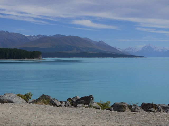 Die erste Nacht im Wohnmobil empfanden wir alle als sehr kalt. So brauchten wir eine Weile, um in die Gänge zu kommen. Nachdem jeder durch eine warme Dusche wieder aufgetaut war, gab es Frühstück an unserem Tisch. Anika saß im Mobiseat und fühlte sich wohl. Der Tag schien sonnig und warm zu werden und so brachen wir bald auf, nicht ohne noch ein Familienbild auf dem Campingplatz von Fairlie geschossen zu haben. Heute ging es zum Lake Tekapo, der uns nach eintöniger Fahrt durch hügeliges Land mit vertrocknetem Gras und vielen Schaffarmen durch sein strahlendes Türkis wie eine unwirkliche Erscheinung vorkam. Wie auf nachträglich bearbeiteten Postkarten wirkte die Farbe des Sees, die durch Sedimente hervorgerufen wird. Umringt war der See von hohen Bergen, von denen in der Ferne manche auch mit Schnee bedeckt waren. Auf einer kleinen Anhöhe vor dem See stand malerisch die Church of the good Shepherd. Wir hielten auf dem dazugehörigen Parkplatz an, besichtigten kurz die Kirche, zogen es dann aber vor, den felsigen Strand entlangzulaufen und in das kalte Wasser zu fassen. Jana watete sogar ein kleines Stück in den See hinein. Anika hingegen untersuchte lieber die Steine am Strand. Sowohl der Strand als auch die Kirche sind ein beliebtes Fotomotiv. Während unserer Anwesenheit wurde es gleich von zwei chinesischen Hochzeitspaaren für Erinnerungsfotos genutzt wurde. Auf einer weiteren Anhöhe über dem Strand befand sich ein Denkmal für alle Hütehunde des Landes, das Sheepdog Memorial. Der landläufigen Meinung entsprechend galt es wohl vielmehr als Denkmal für den Hund des Schafsdiebes Mackenzie, der über 1000 Schafe zusammengeklaut und in diese Gegend geführt hatte. Dieser Dieb genießt selbst heute noch große Achtung, trägt doch das gesamte Verwaltungsgebiet seinen Namen. In der Nähe liegt die kleine Ortschaft Lake Tekapo, deren Zentrum eine übersichtliche Ladenzeile bildet. Dort bot sich für uns die Gelegenheit für eine kleine Auffrischung unserer Nahrungsvorräte, und es gab den sommerlichen Temperaturen entsprechend ein Eis für jeden, das wir im Schatten eines Baumes auf einer Decke genossen. Es gab die Möglichkeit zu Rundflügen über den See und das Massiv rund um den Mount Cook. Wir informierten uns in einem Büro und buchten kurz entschlossen einen Flug, der noch am selben Tag gehen sollte. Die Zeit bis dahin überbrückten wir im Restaurant McKenzies mit Wedges und Getränken und einem tollen Blick auf den See. Möwen saßen bettelnd auf dem Rasen neben uns, und die Sonne brannte auf den Sonnenschirm über uns. Das Wasser des Sees leuchtete derweil unvermindert in schönstem Türkis. Unser Rundflug ging vom nahegelegenen Flugfeld. Wir fuhren mit einem Wohnmobil hin und saßen schon bald nach Ankunft im achtsitzigen Flieger. Dieser erhob sich ohne große Mühe und wir genossen den Ausblick, der sich unter uns entfaltete. Schroffe Berge umringten den See mit seiner malerischen Farbe. Eine Insel bildete einen schönen Kontrast. Wir überflogen die abgelegendste Schaffarm Neuseelands, die durch einen Fluss begrenzt wird. Es gibt nur eine Furt, um die Farm zu erreichen. Bei hohem Wasserstand des Flusses ist die Farm aufgrund einer fehlenden Brücke von der Welt abgeschnitten. Weiter ging es über das Delta des Godley River, in dem sich gräuliche Gletschersedimente mit dem türkisfarbenen Wasser des Lake Tekapo auf vielfältige Weise mischten. Schließlich erreichten wir die Southern Alps, überflogen Gletscher und steile Berge und bestaunten die unberührten Zeugnisse der Naturgewalten unter blauem Himmel. Plötzlich tat sich vor uns die Westküste auf. Nur sehr selten im Jahr kann man diesen Blick überhaupt genießen. Zumeist ist die Küste wolkenverhangen. Wir hingegen sahen weit nach Norden und Süden in Gegenden, die wir erst viel später auf unserer Reise aus nächster Nähe wiedersehen sollten. Mit einem Schlenker über den Franz-Josef-Gletscher und den Fox-Gletscher bog der Flieger wieder ab ins Gebirge. Wir umflogen den Mount Cook in seiner ganzen Erhabenheit, sahen den Lake Pukaki in der Ferne, den Tasman Lake mit auf ihm schwimmenden Eisbergen. Voller Eindrücke kehrten wir wieder zum Flugfeld zurück und ließen uns dort mit breitem Grinsen in den Gesichtern vor dem Flugzeug fotografieren. Noch einmal kehrten wir bei McKenzies ein, tranken etwas und genossen dabei den Blick über den Lake Tekapo, der unter wolkenfreiem, blauem Himmel im Sonnenschein glänzte. Anschließend fuhren wir zum Lake Pukaki, wieder durch ödes, flaches, vertrocknetes Land. Dieser See hatte ebenso seinen ganz besonderen Reiz, wussten wir doch, dass Teile des Hobbits hier gedreht wurden. Wir versuchten zu erraten, welche Szene wo entstanden sein könnte. Außerdem genossen wir den Anblick des Mount Cook, der majestätisch über dem See und andere, kleinere Gipfel thronte. Schließlich erreichten wir das Glentanner Park Centre, wo wir diese Nacht verbringen sollten. Wir parkten beide Wohnmobile wieder nebeneinander und genossen unser Abendbrot in der lauwarmen Luft des Abends. Unter dem Kreuz des Südens ließen wir den Abend ausklingen. Die Toiletten waren durch eine Vielzahl von durch das Licht angezogener Insekten verschiedener Form und Größe gut besucht. Wir hingegen gingen in Erwartung einer wärmeren Nacht zu Bett.