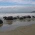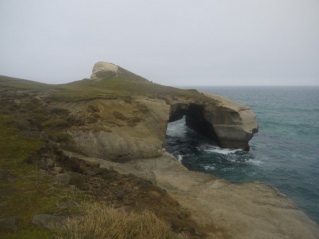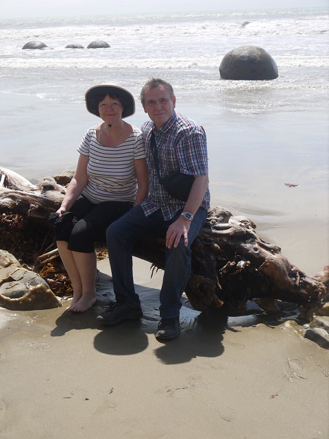 Da Anika in der Nacht mit Geschrei aufwachte, hatten wir sie kurz entschlossen zu uns ins Bett geholt, um den Rest der Nacht noch etwas Schlaf zu haben. Wie sich zeigte, schliefen wir danach offenbar tief und fest, da wir erst später als sonst aufwachten. Nach dem Frühstück erfreuten wir uns am Trampolin des Campingplatzes und gingen danach an den Strand, wo wir schaukelten und uns den Wind um die Ohren blasen ließen. Wir verließen den Campingplatz und fuhren nur wenige Kilometer weiter zu den Moeraki Boulders. Diese runden Felsen am Strand inspirierten uns zu zahlreichen Fotomotiven. Wir kletterten auf die Felsen und standen wie auf einer kleiner Insel in den Wellen des Pazifiks. Bevor es weiterging, stärkten wir uns noch im direkt am Strand befindlichen Café mit Schokokuchen, Sandwich, Wedges und Gemüse-Stack. Unser Tagesziel Dunedin erreichten wir gegen Mittag, und das Wetter wurde auf der Fahrt zunehmend schlechter. Statt blauem Himmel mit Sonnenschein mussten wir nun mit Nebel, Niesel und trübem Wetter vorlieb nehmen. Für die steilste Straße der Welt, die Baldwin Street in Dunedin, war das Wetter nicht das schlechteste, da wir beim Aufstieg so nicht völlig ins Schwitzen gerieten. Selbst für uns Wandererprobte war die Straße eine kleine Herausforderung, denn nur wenige Wanderwege haben eine solche Steigung wie diese Straße. Die gelegentlich an uns vorbeiziehenden Autos versetzten uns daher in Staunen. Dass man so eine Straße überhaupt baut und dann auch noch Häuser an diese Straße setzt, als wäre es das Normalste der Welt, das war schon außergewöhnlich. Nach diesem kleinen Spaziergang fuhren wir zum St. Kilda Campingplatz. Dort stiegen wir alle in den größeren Camper und fuhren zum Tunnel Beach. Der Nebel hing nur knapp über der Steilküste und ließ eine Atmosphäre von Edgar-Wallace-Krimis aufkommen. Schon von oben sahen wir den großen Tunnel, den das Meer aus einem vorstehenden Felsen geformt hat. Während wir an der Küste abstiegen, hielten wir immer wieder an, um die Wellen auf ihrem Weg durch den Tunnel zu beobachten. Als wir nahe genug herangekommen waren, stellte sich heraus, dass der Strand aufgrund eines ganz anderen Tunnels seinen Namen erhalten hatte: Es gab einen engen, von Menschenhand durch den Fels geschlagenen Tunnel, der steil hinab zum Strand ging. Dort genossen wir die Ruhe und Abgeschiedenheit, bevor es zurück nach Dunedin ging. Wegen des Regens nahmen wir das erste Restaurant, das wir fanden. Für uns alle war es das erste Mal in einem kambodschanischen Restaurant, und wir genossen das Essen sehr. Zurück auf dem Campingplatz wollte Anika nicht sofort schlafen. Mit dem Ohr am Babyfon ließen wir den Abend im kleinen Camper ausklingen, da es noch immer regnete. Gegen elf begann für uns alle schließlich die Nachtruhe.
