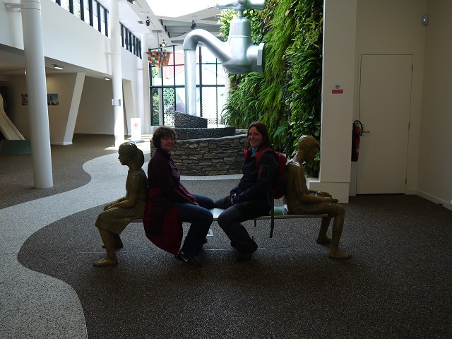 An diesem Tag standen wir schon frühzeitig um 7 Uhr auf, da wir bereits bis 10 Uhr den Campingplatz zu verlassen hatten und unsere morgendliche Routine ja seine Zeit in Anspruch nahm. Wir fuhren dann in die Innenstadt von Dunedin und fanden nach einigem Suchen einen Parkplatz in der Nähe der Cadbury-Schokoladenfabrik. Bevor es an die Stadtbesichtigung ging, buchten wir eine geführte Tour durch die Schokoladenfabrik, hatten bis dahin aber noch eine knappe Stunde Zeit. Also spazierten wir zum Bahnhof, der das meistfotografierte Gebäude in Neuseeland sein soll. Naja, hübsch sieht er allemal aus, sowohl von außen als auch von innen. Es ist nur schade, dass bis auf einen Touristenzug kein Bahnverkehr mehr stattfindet. Da wirkt der ein Kilometer lange Bahnsteig überdimensioniert. Im ersten Stock des Bahnhofs besuchten wir eine Kunstgalerie, die Bilder von sehr unterschiedlichen Stilen und Motiven zeigte. Ein paar davon fotografierten wir auch, bis uns kurz vor Ende der Galerie das Fotografieren-Verboten-Schild auffiel. Nun war es auch schon Zeit, zur Cadbury Schokoladenfabrik zurückzukehren. Hier besuchten wir zunächst die Ausstellung, die die Geschichte der Schokolade im Allgemeinen und die Geschichte von Cadbury im Besonderen darstellte. Unsere anschließende Führung wurde von Wyeth geleitet. Er gab jedem von uns eine Plastiktüte mit ein paar Schokoladen-Probestückchen und eine Haube, damit wir mit unseren Haaren nur ja keine kostbare Schokolade verunreinigen. Wyeth war ein großer Schauspieler, der aber letztendlich wenig wirklich Interessantes sagte und uns überall neue Probestückchen in unsere Plastiktüte steckte. Am Ende standen wir in einem riesigen Turm, in dem eine Tonne Schokolade auf Knopfdruck mit lautem Getöse mehrere Meter in die Tiefe stürzte. Wir standen erstaunt vor dieser großen Unsinnigkeit. Am Ende saßen wir im Café der Fabrik, sortierten unsere Probestückchen aus (massenweiße Marshmellows und Karamell) und waren etwas enttäuscht von der Führung. Zur Abwechslung spazierten wir durch Dunedin. Wir besuchten die St Paul's Cathedral am Octagon, die zwei Baustile in sich vereint. Das Hauptschiff ist neogotisch aus dem 19. Jahrhundert, der Chor wurde erst in den siebziger Jahren des 20. Jahrhunderts in einem sehr schlichten modernen Stil ergänzt. Wir entschlossen uns, zum Ende unserer Stadtbesichtigung den Chinesischen Garten anzusehen. Hier genossen wir Momente der Ruhe und Entspannung inmitten der Stadt. Aber nicht zu lange, denn wir hatten noch ein gutes Stück Weg vor uns. 16 Uhr brachen wir auf zur rauen Südküste. Nach immer kleiner werdenden Straßen und schließlich auch wieder einmal einer Schotterpiste kamen wir am Nugget Point an. Eine kleine Wanderung entlang der Steilküste mit Blick auf Seelöwen führte uns schließlich zum Leuchtturm und der Aussichtsplattform, von wo aus wir die namensgebenden, riesigen Felsbrocken sahen. Nachdem wir uns lange genug den Wind um die Ohren haben blasen lassen, fuhren wir zum Pounawea Motor Camp. Der Campingplatz liegt idyllisch am Catlins River, der bei Ebbe trocken fällt. Das Trampolin konnten wir leider nicht nutzen, denn es fing zu nieseln an. Dafür war die Küche gut ausgestattet mit Geschirr und Töpfen. Das wollten wir nutzen und kochten Bratkartoffeln und Rührei. Nach diesem deftigen, leckeren Abendbrot saßen wir noch eine Weile in der Küche und planten den nächsten Tag.