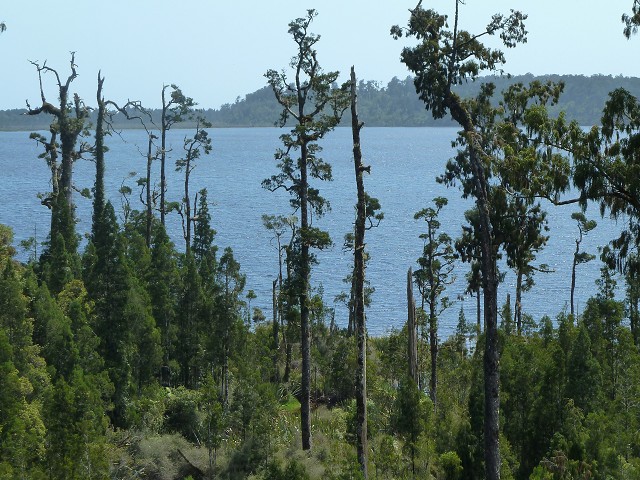 Der Morgen brach für Jana und Sascha eher überraschend ein, während die anderen schon um 7 Uhr begannen aufzustehen. Nach einem ausgiebigen Frühstück packten wir zusammen und verließen das Rainforest Retreat gegen 10 Uhr. Wir fuhren weiter nach Norden mehr oder minder entlang der Küste, von der wir aufgrund des Regenwalds streckenweise nichts sahen. Unser erster Stopp des Tages galt dem Hokitika Tree Top. Dieser aufgeständerte Pfad erlaubte uns, mitten durch die Baumkronen zu laufen und auf das Unterholz weit unter uns zu blicken. In der Ferne konnten noch die Neuseeländischen Alpen sehen. Auf der anderen Seite sahen wir hinten den Bäumen den Lake Mahinapua. Der Pfad ist erst im Dezember 2012 eröffnet worden. Entsprechend frisch war noch alles. Insbesondere die Sicht auf das Unterholz war noch nicht wieder komplett zugewachsen. Sascha gab sich Mühe, an jedem der Punkte des Pfades etwas Schlaues aus dem an der Kasse erhaltenen Faltblatt zu übersetzen, was nur bedingt auf interessierte Ohren stieß. Nach einem stärkenden Kaffee fuhren wir nach Hokitika. Hier erledigte Jana Reservierungen für die Campingplätze der nächsten Tage und auch für das Wassertaxi, welches wir im Abel Tasman National Park nehmen wollten. Wir machten alle einen Stadtbummel durch diese großzügig angelegte kleine Stadt, die einmal die wichtigste der Westküste war. Davon zeugten noch prächtig verzierte Gebäude, bei denen allerdings schon vielfach der Putz bröckelte. Am Strand entdeckten wir die Überreste des Driftwood Festivals, bei dem aus dem angespültem Strandgut kleine und größere Kunstwerke konstruiert werden. Hokitika ist weithin berühmt für die Jade-Verarbeitung. Diese Gelegenheit nutzten die beiden Omas Angelika und Margit und kauften sich jeder eine Kette in einem der zahlreichen, auf Jade spezialisierten Läden im Ort. Danach frischten wir unsere Vorräte im lokalen Supermarkt auf und ließen Hokitika hinter uns. Wir überholten einen Güterzug, der parallel zu Straße entlang tuckerte und fuhren über Greymouth nach Rapahoe. In diesem verschlafenen kleinen Ort direkt an der Westküste hatten wir Stellplätze auf einem No-Name-Campingplatz reserviert. Schon auf den ersten Blick sah es etwas anders aus als auf den Plätzen, die wir bisher gewohnt waren. Der Platzwart setzte dem Ganzen die Krone auf. Er saß in seiner kleinen Hütte und schaute Rugby. Offensichtlich spielte gerade Neuseeland. Er ließ sich durch unser Anklopfen zunächst nicht stören. Nach einer Weile bemüßigte er sich doch noch und schaute uns leicht mißmutig, leicht amüsiert an, wobei uns seine Alkohol-Fahne umwehte. Nach etwas Smalltalk durften wir uns selbst einen Stellplatz aussuchen. Zuvor fragten wir ihn noch, wie man zum Motukiekie Beach käme. Er riet uns davon ab, da man auf Leitern und an Seilen hinabklettern müsste. Wir hielten nicht viel von seinen wirren Aussagen, wünschten ihm aber noch viel Glück bei seinem Spiel, dass er bereits fast vergessen hatte. Dann suchten wir uns zwei hübsche Stellplätze fast direkt am Strand aus und fuhren mit dem großen Camper die Straße weiter Richtung Norden. Laut Navigation mussten wir an einer kleinen Bucht am Straßenrand parken, von der ein schmaler Pfad in den Regenwald verschwand. Das sah etwas suspekt aus. Hans befand den Weg aber in Ordnung, und so gingen wir los. Schon bald standen wir vor der ersten Metallleiter, die an den Felsen montiert war, und dir hinab mussten. Danach ging der Weg steil und kurvenreich nach unten. Der Platzwart hatte nicht gelogen. Wir waren vielleicht etwas blauäugig gewesen, aber als wir plötzlich aus dem Regenwald traten, waren wir an einem einsamen Strand. Hans, Jana und Sascha kletterten an einem Seil hinab und konnten das besondere Licht des Abends und die Monolithen im Wasser vor dem Strand genießen. Die drei Damen sahen sich den Strand von einem Felsen etwas oberhalb aus an. Als wir den abenteuerlichen Weg nach oben wieder erklommen hatten, waren wir allesamt begeistert, dass wir diesen Abstecher gemacht hatten. Zurück auf dem Campingplatz aßen wir Abendbrot und machten noch einen kleinen Strandspaziergang. Dabei bewunderten wir einen herrlichen Sonnenuntergang. Wie wir erst später erfahren sollten, machten wir dabei auch die meisten Bilder des Urlaubs. Den Abend ließen wir an einem Tisch am Swimming Pool ausklingen, wo wir geschützt vor dem Wind sitzen konnten. Ein kleiner Pfad verband den Platz mit unseren Stellplätzen. Dieser Pfad war, vor allem, als es dann dunkel war, äußerst märchenhaft, da er nur durch bunte Lichterketten erleuchtet war. Wie wir dann auch entdeckten gab es auf den Toiletten Auslegware, und die Duschen befanden sich direkt im Frühstücksraum. Alles wirkte irgendwie seltsam und knuffig zugleich. Wir saßen noch lange zusammen, auch weil Anika nicht müde war und lange mit uns aufblieb.