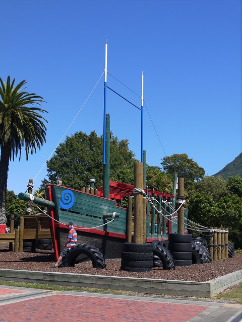 Die Sonne lachte, während wir unter freiem Himmel in aller Ruhe frühstückten. 10 Uhr verließen wir dann den Motueka Top10 Holiday Park. Wir wollten noch einmal beim »Raeward Fresh« in Richmond halten, um frisches Sauerteig-Brot zu kaufen, aber diesmal gab es leider keines. Also fuhren wir direkt weiter bis Nelson. Wir hatten im Reiseführer gelesen, dass es in dem kleinen Städtchen viele Kunstgalerien geben soll und besonders Angelika freute sich schon sehr darauf. Zuallererst füllten wir jedoch unsere Nahrungsmittel-Vorräte im Countdown-Supermarkt wieder auf und suchten dann einen Parkplatz. Das war leichter gesagt als getan. Wir fuhren etliche Runden durch das Stadtzentrum, leider ohne Erfolg. Erst etwas außerhalb an einer Ausfallstraße fanden wir dann einen Platz. Über den Hügel mit der Kathedrale schlenderten wir zurück ins Stadtzentrum und trennten uns dort für 2 Stunden, damit jeder selbst die Stadt etwas erkunden konnte. Jana, Sascha und Anika machten erst einmal ein Bistro unsicher und futterten Knoblauch-Baguette. Dann ging es weiter durch ein paar Läden, wo sie ein Sommerkleidchen für Anika erstanden. Unterwegs trafen sie auch wieder auf Hans und Margit, die gerade aus einem Souvenir-Shop kamen. Angelika suchte nach Kunstgalerien, fand jedoch keine. Auf dem Weg zurück zum Treffpunkt erspähte Sascha noch die Creperie »La Gourmandaise«, der wir einfach nicht widerstehen konnten. Wir bestellten uns jeder einen Crepe und spachtelten ihn schon etwas in Eile in uns hinein. Schließlich wollten wir pünktlich am Treffpunkt sein. Allerdings machte uns Anika einen Strich – oder besser gesagt einen Schiss - durch die Rechnung :-). Nach dem Wickeln brachen wir dann eilig auf und kamen doch etwas zu spät. Gegen 16 Uhr verließen wir Nelson, von dem wir uns wohl alle ein wenig mehr versprochen hatten. Vor uns lagen nun noch gut 100 km bis Havelock, wo wir die Nacht auf dem Campingplatz vorgebucht hatten. Nach etwas mehr als der Hälfte der Strecke war Jana aufgrund der kurvigen Strecke plötzlich schlecht. Da kam uns das Foresters Café gerade recht für eine Pause. Wir breiteten eine Decke auf dem Rasen davor aus, damit Anika ein wenig umherrobben konnte. Sascha und Hans holten derweil Coffee to go für uns alle und Jana’s Magen beruhigte sich allmählich wieder. Als wir alle so da saßen, versetzte Anika uns plötzlich in großes Staunen. Denn sie stemmte sich in den Vierfüßlerstand und fing plötzlich an zu krabbeln! Wir waren baff. Pünktlich zu ihrem „9. Monatsgeburtstag“, der genau heute war, wurde unsere Kleine also plötzlich ganz mobil. Kurz darauf kamen noch andere Gäste, die einen Golden Retriever dabei hatten. Der Hund war ganz brav und legte sich zu uns in den Schatten. Anika war natürlich sofort neugierig und durfte den Hund auch einmal streicheln. Dann fuhren wir weiter und passierten nach wenigen Kilometern die Pelorus Bridge. Hier hielten wir erneut und nahmen einen kurzen Weg zum Ufer des Flusses. Wir hätten die Badesachen mitnehmen sollen! Das Wasser schimmerte in schönstem grün und war kristallklar. Da wären wir gerne hineingehüpft. Außerdem gab es einen hübschen kleinen Campingplatz inmitten dieser schönen Natur. Der wäre sicherlich schöner gewesen als der in Havelock, aber dort hatten wir ja reserviert und es wurde auch schon immer später. Also beeilten wir uns weiterzukommen und erreichten bald das kleine Städtchen am Pelorus Sound. Nachdem wir unsere Camper abgestellt und zu Abend gegessen hatten, machten wir noch einen Abendspaziergang. Wir gingen zur Marina und an das Ufer des Meeresarmes, jedoch wirkte alles etwas verschlafen und andererseits wie in einem Industriegebiet. Havelock ist das Zentrum der Green Lip Mussels, die draußen im Pelorus Sound gezüchtet werden. In einer großen Fabrik werden sie dann verarbeitet. Eine Schönheit ist das Städtchen jedenfalls nicht. Zurück auf dem Campingplatz saßen wir noch bis spät abends vor der Küche, da es hier schön windgeschützt war. Anika schlief nach etlichen kalten Nächten endlich einmal wieder im eigenen Bett, allerdings nur bis 5 Uhr nachts, dann wollte sie doch lieber wieder zwischen Mama und Papa schlafen.