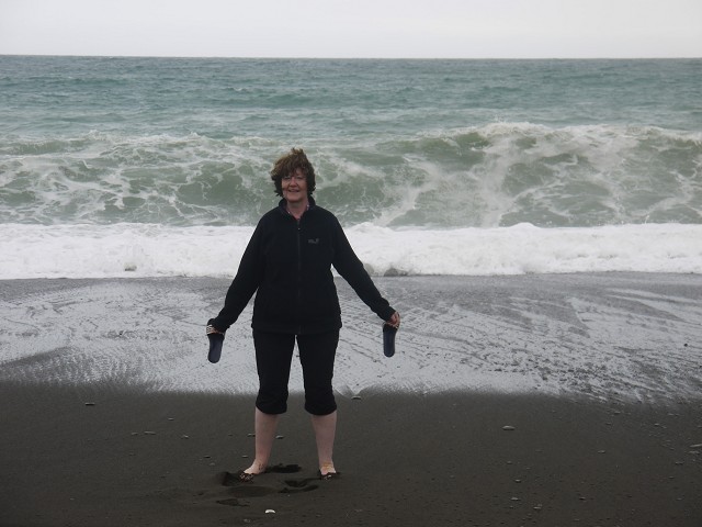 Auch wir hielten am Ohau Stream, aber einige entgegenkommende Touristen sagten uns, dass derzeit keine Babyrobben am Wasserfall seien. So bestiegen wir wieder unsere Wohnmobile und fuhren weiter den State Highway 1 gen Süden. Jana wusste, dass einige Kilometer vor Kaikoura fangfrische Langusten (Crayfish) angeboten werden und so hielten wir bei Nin’s Bin, um eines dieser Tierchen zu probieren. Der Preis richtet sich nach der Größe des Schwanzes und reichte von 56 bis weit über 100 NZD. Wir nahmen die kleinste Languste, die bereits in der Nacht gefangen und am Morgen gekocht worden war. Man bekommt sie kalt serviert und kann sich noch warme Pommes dazu bestellen. Außerdem hatten wir noch einen Weißwein im Kühlschrank, der prima dazu passte. Zu viert verputzten wir das Tierchen, nur Angelika wollte nicht probieren. Uns anderen schmeckte es durchaus, auch wenn es kein kulinarischer Hochgenuss ist, wie man sich das vielleicht vorstellt. Kann man essen – nicht mehr und nicht weniger. Die Preise an diesen Imbisswagen mögen einem ja schon sehr hoch erscheinen, aber in Restaurants kostet der Spaß noch viel mehr. Später sahen wir in Kaikoura einen halben Crayfish auf der Speisekarte für 100 NZD. Und die Größe schreiben sie hier gleich gar nicht dazu. Nachdem wir gegessen hatten, machten wir noch einige Fotos am Strand, denn das Wasser leuchtete in hellem Türkis. Zudem saß ein Kormoran am Strand, der sich ausgiebig putzte. Allerdings war es unglaublich windig und kalt, so dass wir es nicht allzu lange aushielten. Deshalb setzten wir unsere Fahrt bis Kaikoura fort, wo wir als erstes an der Lavendyl Lavender Farm hielten. Ein Foto von den Lavendelfeldern mit der Kaikoura Range im Hintergrund hängt an Janas Arbeit in ihrem Büro, da mussten wir natürlich noch einmal vorbei schauen. 2008 waren Jana, Margit und Hans hier recht spät am Abend vorbeigekommen und hatten nur noch dieses eine Foto direkt am Eingang geschossen. Diesmal wollten wir die Farm richtig besichtigen. Wir warfen unsere Eintrittsgelder (2 NZD pro Person) in die Box und schauten uns die wunderschön angelegten Gärten mit den lila blühenden Lavendelsträuchern an. Eines der Felder wurde gerade abgeerntet und so kamen wir mit dem Besitzer der Farm ins Gespräch - einem netten Holländer, der hier seit vielen Jahren mit seiner Frau lebt und die Farm betreibt. Weiter ging es dann ins Zentrum von Kaikoura, wo wir an der Touristinfo parkten. Anika schlief jedoch gerade, so dass Sascha bei ihr im Camper blieb. Wir anderen machten einen Bummel durch das Städtchen und blieben vor allem in einem Touri-Laden hängen, in dem wir T-Shirts, Fleece-Jacken und anderen Krims-Krams kauften. Nach etwa einer Stunde Shopping kehrten wir zu Sascha zurück, der inzwischen schon eine Weile mit Anika gespielt hatte, da sie dann doch nicht so lange geschlafen hatte wie gedacht. Sie lachte uns schon durch die Fensterscheiben an und freute sich, dass es endlich weiter ging. Etwa 7 km südlich von Kaikoura hatten wir eine Nacht auf dem Peketa Beach Holiday Park reserviert, auf dem Jana, Hans und Margit schon auf ihrer letzten Neuseeland-Reise 2008 übernachtet hatten. So freuten sich die 3 schon auf den Flying Fox und den schönen, wilden Strand, den der Platz zu bieten hat. Wir hatten einen schönen Stellplatz mit Blick aufs Meer und gleich mehrere Sitzgruppen rund um unsere Camper. Allerdings würden wir diese kaum nutzen können, denn es war immer noch sehr windig und frisch. Den Flying Fox testeten wir aber trotzdem ausgiebig und auch Anika hatte ihren Spaß auf dem Spielplatz mit Rutsche, Schaukel und Wippe. Außerdem entdeckten wir noch eine Baumschaukel, die Anika und Jana riesigen Spaß bereitete. Das Abendessen wollten wir dann wegen des Wetters in der Küche machen. Margit brutzelte uns ein leckeres Rührei, dass wir mit großem Appetit vertilgten. Am Abend saßen wir wieder im kleinen Camper und ließen den Abend entspannt ausklingen.