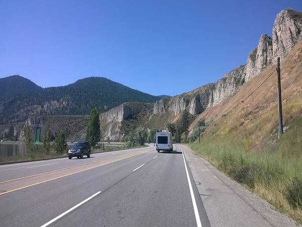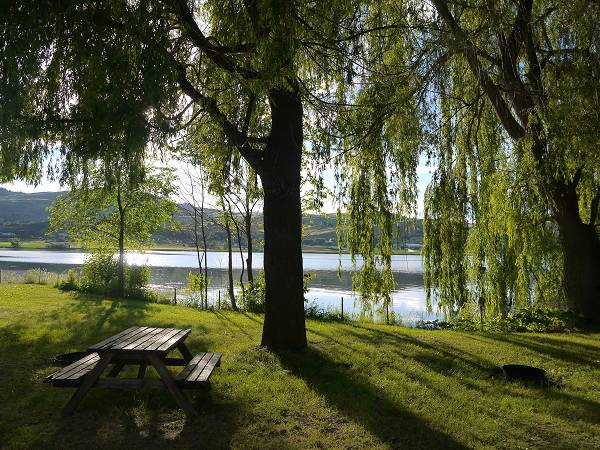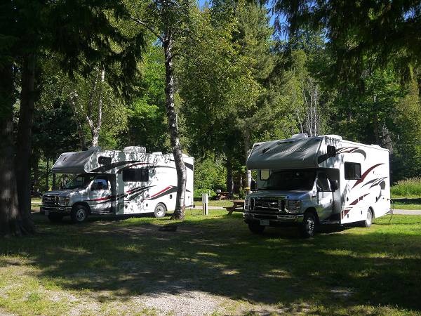 Um 7 Uhr waren wir auf den Beinen, um zu duschen. Anika durfte wie immer etwas länger schlafen. Dann gab es Frühstück und wir klappten zum ersten Mal unser Sonnendach aus, denn die Sonne schien uns mitten ins Gesicht. Danach machten wir ein paar Erledigungen. Wir fuhren zur Dump Station und zum Safeway zum Einkaufen und Tanken. Danach ging es weiter nach Kelowna. Unser Campingplatz Orchards Valley war eigentlich eine Farm. Wir hatten einen großen Stellplatz direkt neben der Apfelplantage. Nach dem Check-In fuhren wir zur Orchards Park Mall, wo wir etwas bummelten. Auf dem Parkplatz gab es einige Restaurants, die aber proppenvoll waren. Deshalb begnügten wir uns mit dem Foodcourt in der Shopping Mall und alle entschieden sich für asiatisches Essen. Danach fuhren wir zum Visitors Center und reservierten für morgen Fahrräder für den Myra Canyon. Danach machten wir einen Stadtbummel durch Kelowna, fanden die Stadt aber eher enttäuschend - was vielleicht aber auch am schlechten Wetter lag. Es war kalt, windig und nieselte. Die Uferpromenade war sogar etwas überspült und der Waterpark abgesperrt. Außerdem gab es viele "Penner" und es war insgesamt irgendwie ungemütlich. Deshalb fuhren wir zurück zum Campingplatz. Heute war Antonia mit Duschen dran und fand das gar nicht toll. Dafür war Anika tapfer und wurde mit einem Schokololly belohnt. Das Abendessen konnten wir wieder draußen machen. Schon 19:30 Uhr war Antonia im Bett und alle anderen saßen mit Anika noch bis 22 Uhr draußen.