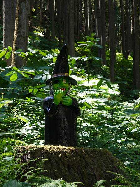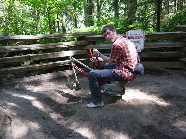 Um 7:30 Uhr standen wir auf und wollten heute auch die beiden Mädels duschen. Das dauerte ewig und irgendwann rief jemand "I think you are clean now!". Schließlich konnten wir endlich frühstücken und dann fuhren wir zum Walmart, um uns einzudecken für unsere Zeit auf Vancouver Island. Um 11 Uhr fuhren wir Richtung Horseshoe Bay, wo wir eine Fähre früher als reserviert erwischten. So waren wir schon um 15 Uhr in Nanaimo. Im Visitor Center buchten wir eine Whale Watching Tour für Tofino. Dann wollten wir noch eine kleine Wanderung machen. Wir fuhren zum Cable Bay Trail, der durch den Farnwald führt bis zu einer Meeresbucht. Anika entdeckte plötzlich einen Dino auf einem Baumstamm und dann noch einen und noch einen. Sie sammelte die Dinos ein und freute sich über den Spielzeug-Regen. Doch uns wurde langsam klar, dass die Dinos hier stehen bleiben sollten, damit noch ganz viele Kinder ihre Freude an diesem schönen Wanderweg haben. Wir erklärten dies Anika und dann stellte sie die Dinos tatsächlich wieder hin. In der Cable Bay angekommen sahen wir kleine Otter im Wasser spielen und bewunderten Krebse auf dem felsigen Ufer. Danach fuhren wir zum Brannen Lake Campground. Der hatte einen tollen Spielplatz und lag hübsch gelegen in einem Waldstück. Der namensgebende See lag jedoch ein Stück abseits, so dass wir ihn lieber morgen früh besuchen wollten. Stattdessen saßen wir bis 23 Uhr draußen auf unseren Bänkchen im Wald.