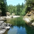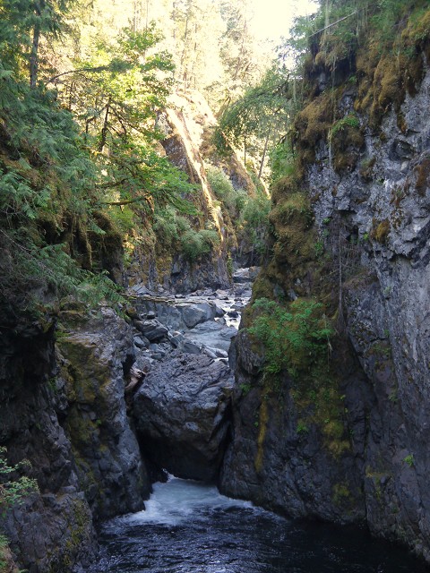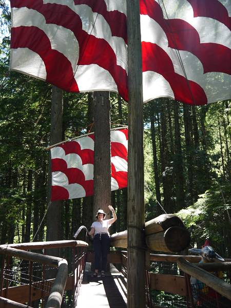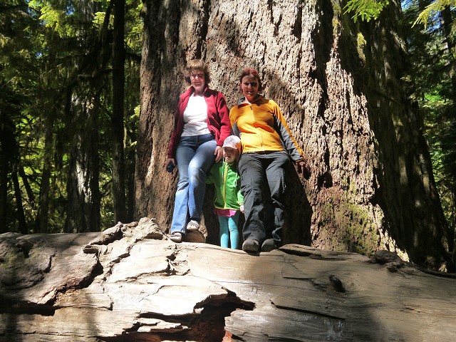 Zwischen 7:30 und 8 Uhr schälten sich alle aus den Betten und Antonia war wieder gut drauf. Unser Frühstück konnten wir wieder draußen einnehmen und um 10 Uhr fuhren wir in Richtung Cathedral Grove. Ein Rundwanderweg führte durch den Wald mit seinen 300 bis 800 Jahre alten majestätischen Bäumen. Sehr beeindruckend! Unser nächstes Ziel war Qualicum Beach. Dort entdeckten wir eine German Bakery und kauften ein echtes Roggenbrot. Hmmm! Generell bot der Ort viele hübsche Läden: Margit kaufte sich ein T-Shirt und ein Kleid und Jana Schmuck in der Art Gallery "The old School House". Zudem entdeckten wir ein kleines französisches Café, wo wir eine Kleinigkeit zum Mittag fanden. Blumenampeln schmücken den gesamten Ort - hier kann man es wirklich aushalten! Am Nachmittag fuhren wir wieder zu unserem Coombs Country Campground und wollten den Swimming Pool ausprobieren. Außerdem wollten wir wieder einmal unsere Wäsche waschen und spannten Wäscheleinen zwischen den Bäumen. Zum Abendessen gab es Reis mit Coconut Chicken und Peanut Sauce und die Kinder waren um 20:30 Uhr im Bett verschwunden.