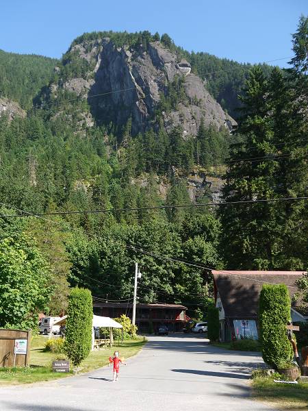6:30 Uhr standen wir auf. Zum Frühstück waren es bereits 21 Grad! Hier herrscht wirklich Wüstenklima und das mitten in Kanada! Danach ging es Richtung Westen durch das Similkameen Valley. Hier gibt es viele Obststände, aber auch viele Schilder "No National Park" und ein Campingplatz reiht sich an den anderen. Wir fuhren weiter bis Princeton wo wir tankten und einen kurzen Stopp im Visitor Center machten. Danach ging es weiter bis Manning Park. Nachdem wir Antonia ihr Mittagsgläschen gefüttert hatten, machten wir am Beaver Pond eine kleine Wanderung. Leider sahen wir keine Biber, aber dennoch war der Weg recht hübsch. In der Manning Park Lodge machten wir Mittag, allerdings fühlte die sich eher an wie eine Kantine. Unser nächstes Ziel war der Hope Slight Viewpoint. Hier hatte es 1965 einen Bergrutsch gegeben. Der Berg war damals auf 3 km Breite abgerutscht und hatte den Highway verschüttet. Heute liegt der Highway 55 m höher. Unvorstellbar! Wir fuhren weiter nach Hope zum Holiday Motel & RV Park. Dort checkten wir ein. Der Park war gerade erst von 2 Koreanern übernommen wurden, die dem etwas in die Jahre gekommenen Gelände nun neuen Glanz einhauchen wollten. Überall wurde noch gewerkelt. Die Sanitäranlagen waren allerdings noch nicht fertig und so musste man Dusche und Toilette in einem der Motelzimmer nutzen, wobei das Zimmer eher eine Rumpelkammer war als ein Gästezimmer. Der "heated Pool" stellte sich als eiskalt heraus. Jana und Anika gingen trotzdem hinein. Sascha nutzte die Mittagspause zum Schlafen. Dann aßen wir alle eine gute Portion Eis und um 17:30 Uhr wollten wir die kleine Stadt Hope noch erkunden. Wir kauften im Supermarkt ein und machten Abendessen in einer Pizzeria, die zu Antonias Freude auch Nudeln und Gnocchi hatte. Danach kamen wir am Festplatz vorbei, wo der heutige Canada Day gefeiert wurde. Es gab eine Hüpfburg, die Anika natürlich gleich ausprobieren musste. Außerdem gab es Kinderschminken, Country Musik, Japanische Trommler und die Nationalhymne wurde gespielt. Hier blieben wir eine Weile und genossen das bunte Treiben. Erst um 21 Uhr kehrten wir zum Campingplatz zurück, wo einige Jugendliche Krach machten. Die Kinder schliefen dennoch schnell ein und der Rest von uns saß noch bis 22 Uhr draußen.