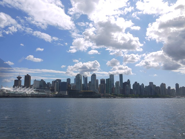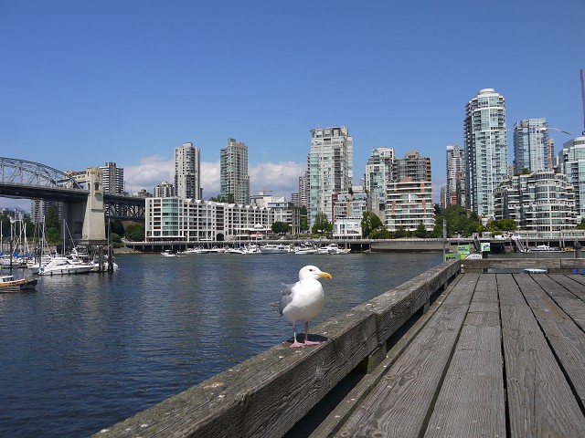 Heute genossen wir unser letztes Frühstück mit Wohnmobil. Danach mussten wir noch den letzten Rest packen und die Mobile ausfegen. Dann fuhren wir nach Annacis Island / Delta, wo wir unsere Wohnmobile schweren Herzens wieder abgaben. Für den kleinen Unfall in Osoyoos mussten wir unseren Eigenanteil bezahlen und warteten dann eine ganze Weile, bis das Taxi in die Stadt kam. Schließlich erreichten wir um 13 Uhr das Ramada Downtown in Vancouver. Es war allerdings nur ein Zimmer bezugsfertig. Also stellten wir alle Sachen im Storage Room ab und gingen zu Fuß nach Granville Island, dass uns im Hotel empfohlen worden war. Zurück wollten wir den Bus nehmen. Im Bus kann man jedoch nur passend bezahlen, deshalb wechselten wir vorher noch Geld. Granville Island hat ein ganz eigenes Flair. Hier sind viele ehemalige Fischfabriken umgewandelt worden in Restaurants und Läden. Im Bridges Restaurant saßen wir auf der Terrasse und aßen tollen Fisch, nur Jana bekam nichts, denn Anika futterte ihr alles weg. Danach hatte jeder 2 Stunden Zeit für sich zum Bummeln. In der Markthalle bestaunten wir den frischen Fisch, Eis und leckere Törtchen. Anika ging dann mit Papa in einen Indoor-Spielplatz und Jana kaufte einige Souvenirs und einen neuen Rucksack, da ihrer während der Reise kaputt gegangen war. Um 17:15 Uhr fuhren wir alle mit dem Bus zurück zum Ramada Hotel und konnten nun auch die restlichen Zimmer beziehen. Allerdings war bei Jana, Sascha, Antonia und Anika im Zimmer der ganze Teppich nass, was wir umgehend reklamierten. Ein neues Zimmer sollten wir aber erst morgen bekommen. Dann suchten wir ein Restaurant zum Abendessen und fanden ein nettes kleines libanesisches Restaurant. Wir bestellten eine Limonade, aber es war so laut hier, dass sich unser Baby Antonia sichtlich unwohl fühlte. Deshalb bestellten wir nichts zu essen, sondern kauften stattdessen einige fertige Salate im Supermarkt. Diese aßen wir im Emery Barnes Park, während die Kinder auf dem Spielplatz spielten. Dann ging Jana mit Antonia zurück zum Hotel, damit die Kleine schlafen konnte. Die anderen blieben noch eine Weile im Park.