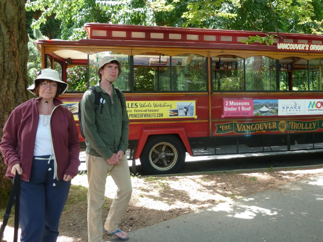 Zu unserem Ramada Hotel gehörte auch der Morrissey Pub, in dem das Frühstück angeboten wurde. Das war allerdings eher eingeschränkt und englisch geprägt. Naja, satt wurden wir trotzdem. Danach fuhren wir mit dem Bus nach Downtown und liefen die letzten Meter zum Westin Bay Shore Hotel zu Fuß. Von dort startete der Hop-On-Hop-Off-Bus der Trolley Company durch den Stanley Park. An Bord kauften wir die Tickets und fuhren das erste Stück bis zum Rose Garden. Dort spielten die Kinder eine Weile auf dem Spielplatz, bevor wir in „Stanleys Bar and Grill“ einkehrten, um zum Mittag zu essen. Wir saßen auf der schönen Terrasse und das Essen war echt lecker. Dann wollten wir weiterfahren mit dem Trolley, aber dieser stellte sich als ziemlich unpünktlich heraus und wir warteten eine halbe Ewigkeit. Schließlich ging es endlich weiter zu den Totempfählen. Nachdem wir unsere Fotos geschossen hatten, machten wir eine kleine Wanderung entlang des Ufers, vorbei am Leuchtturm bis hin zum Girl in a Wetsuit, die uns sehr an die kleine Meerjungfrau in Kopenhagen erinnerte. Etwas pflastermüde bestiegen wir wieder unseren Trolley und fuhren weiter zum Second Beach. Dort gab es Kaffee und Eis und gleich 2 tolle Spielplätze. Die Kinder schaukelten ausgiebig, wobei Antonia fast in der Schaukel versank. Auf dem zweiten Spielplatz stürmten wir das Feuerwehrauto und hatten eine Menge Spaß. Die nächste Trolley-Haltestelle war dann auch nicht weit und wir fuhren zurück nach Downtown zum Canada Place. Das imposante Gebäude am Hafen besichtigten wir sowohl von innen wie auch von außen und entdeckten dann den Pier für die Wasserflugzeuge. Seit Victoria hatten wir sowieso schon mit der Idee geliebäugelt, auch Wasserflugzeug zu fliegen und das wollten wir nun in die Tat umsetzen. Jana ging mit Margit und Hans zu den Büros der Wasserflugzeug-Anbieter und buchte für den nächsten Tag einen Flug für uns alle. Sascha, Angelika und die Kinder fuhren derweil mit der fahrerlosen U-Bahn, die etwas außerhalb der Innenstadt plötzlich zum Skytrain wird. Wieder vereint fuhren wir zurück nach Yaletown, wo wir ein hübsches Restaurant zum Abendessen suchten und die Yaletown Brewery fanden. Hier gab es erstklassiges italienisches Essen, leckeres selbst gebrautes Bier und Eistee, aus dem Antonia die Zitronenscheibe mopste und genüsslich drauf herumkaute. Nach einem lustigen Abend ging es zurück zum Hotel zum Schlafen.
