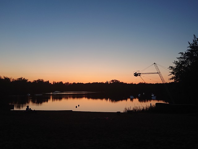 Keiner hatte Lust aufzustehen, also schliefen wir bis 8:30 Uhr. Jana holte Brötchen und Sascha bereitete das Frühstück vor. Die Kinder ließen sich nur schwer wecken. Dann aßen sie nur wenig und gingen lieber auf den Spielplatz. Wir räumten zusammen, so dass wir noch vor 11 Uhr abfahren konnten. Wir fuhren nach Lüneburg und spazierten zwei Stunden durch die wunderschöne Altstadt. Die Kinder bekamen ein Eis und etwas Kleines zum Spielen. Dann fuhren wir weiter, wobei wir heute 4 Bundesländer sehen sollten, wenn auch teilweise nur sehr kurz. Nach unserem Start in Niedersachsen durchfuhren wir an der Elbe ein kleines Stück Schleswig-Holstein und machten gegen 14:30 Uhr eine kurze Pause am Spielplatz in Bickhusen, Mecklenburg-Vorpommern. Weiter ging es dann nach Brandenburg. Wir fuhren ohne weiteren Halt bis nach Ruhlsdorf zum Campingplatz Wake & Camp. Der Campingplatz liegt inmitten eines kleinen Waldes am Rande eines Sees mit Wasserski- und Wakeboard-Anlage. Auch das Publikum war anders als bisher. Hier tummelten sich Berlins Aussteiger, obercoole Surfertypen und Corona scherte hier auch niemanden. Wir waren wohl die Einzigen mit Maske, genossen aber dennoch das Berlin-Kalifornien-Gefühl. Wir gingen baden im See und bekamen sogar noch ein kleines Abendbrot auf der Terrasse des Restaurants, wo extra für uns noch eine Wurst und ein Steak auf den Grill gelegt wurde. Hier saßen wir noch eine ganze Weile und genossen schließlich den Sonnenuntergang über dem See. 20:30 Uhr waren wir zurück im Wohnmobil und machten ein ruhiges Abendprogramm.