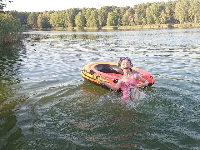 Gegen 8 Uhr standen wir auf. Es gab ein gemeinsames Frühstück, aber erst nachdem alle Kinder schon einmal ausgiebig gespielt hatten. Dann kam die Oma aus Berlin dazu. Jana fuhr alleine mit dem Wohnmobil erneut nach Hoppegarten zur Reparatur der Wasserpumpe. Oma Angelika und Tino gingen derweil zum Wochenmarkt und dann alle zusammen zum See. Unser Schlauchboot erfreute sich großer Beliebtheit und war in intensivem Einsatz durch Kapitän Benjamin und Schwimmerin Anika. Als die Wasserpumpe repariert war, stieß Jana auch mit dazu und wir futterten Pommes und Chicken Nuggets vom Kiosk des Strandbads. Gegen 17 Uhr gingen wir zurück und aßen in großer Runde Abendbrot - Fladenbrot mit orientalischen Aufstrichen sowie Grillhähnchen. Hmm, lecker! Danach spielten die Kinder im Garten und die Erwachsenen saßen zusammen. Anika durfte heute neben Benjamin im Hochbett schlafen, Antonia lag unten. Es dauerte eine ganze Weile ehe alle eingeschlafen waren. Die Erwachsenen saßen derweil auf der Terrasse und schauten nach Sternschnuppen, die jetzt im August zahlreich über den Himmel flitzen.