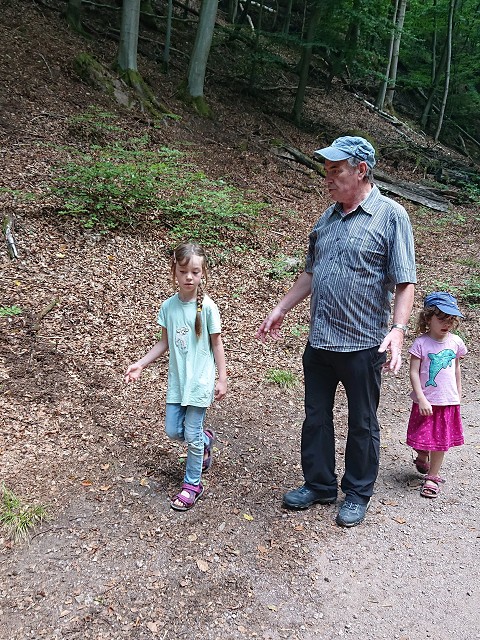 Kurz nach 8 Uhr standen wir auf. Sascha holte nach der Dusche die Brötchen, dann gab es Frühstück. Während Jana duschte wollten die Kinder schon spielen. Wir räumten auf und machten uns abreisefertig. Dann hatten Anika und Antonia noch einmal eine Reitstunde - diesmal auf Grace, einem weißen Pony. Gegen 11 Uhr fuhren wir ab zur Drachenschlucht. Ein kurzes Stück nahmen wir Oma Margit und Opa Hans mit zur „Hohen Sonne“, die ihr Auto am unteren Ende der Drachenschlucht geparkt hatten. Auf der „Hohen Sonne“ gab es ein kleines Mittagessen am Kiosk, dann spazierten wir die Drachenschlucht hinab. Es ging zwischen den engen Felsen hindurch, während unter unseren Füßen der Bach rauschte. In den Waldstücken der Schlucht liefen die Kinder teilweise direkt im Bach oder sie kletterten über umgestürzte Baumstämme. Unten angekommen fuhren wir mit Omas und Opas Auto wieder hoch zum Wohnmobil. Im Konvoi ging es dann weiter zum Altenberger See unserem nächsten Campingplatz für die nächsten 2 Nächte. Hier gab es Kaffee, Kuchen und Eis und anschließend planschten die Kinder im See. Kurz vor 18 Uhr fuhren Margit und Hans nach Hause und wir machten Abendessen. Danach spielten die Mädels mit anderen Kindern auf den Steinpferden auf dem Campingplatz. In der Dämmerung machten wir noch einen Abendspaziergang mit der Taschenlampe um den See, wobei wir jeden Spielplatz noch einmal ausgiebig „testeten“. 22 Uhr waren wir schließlich alle im Bett.