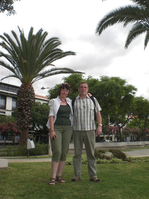 Unser Flug von München nach Madeira ging erst am Nachmittag. Nach vier Stunden Flug landeten wir auf dem Flughafen Santa Cruz. Der Anflug ist spektakulär, denn man befindet sich schon direkt neben der Landebahn und scheint an der Insel vorbeizufliegen, wenn das Flugzeug plötzlich eine 180 Grad Wendung und anschließend eine Vollbremsung auf der kurzen Landebahn hinlegt. Nur sehr erfahrene Piloten dürfen hier überhaupt landen. Bei uns ging alles gut und schon bald hatten wir unser Gepäck. Mit einem Shuttle Bus ging es dann zum »Panorâmico Hotel« in Funchal, welches ein wenig außerhalb der Innenstadt liegt. Dort stellten wir unser Gepäck ab und aßen Abendbrot im Hotel. Danach wollten wir noch eine erste Erkundungstour in die Stadt unternehmen und gingen zu Fuß den Berg hinab bis zur Hafenpromenade. Dort war noch buntes Treiben angesagt und so genossen wir noch ein wenig das mediterrane Flair. Mit dem Taxi fuhren wir dann zurück zum Hotel.