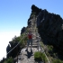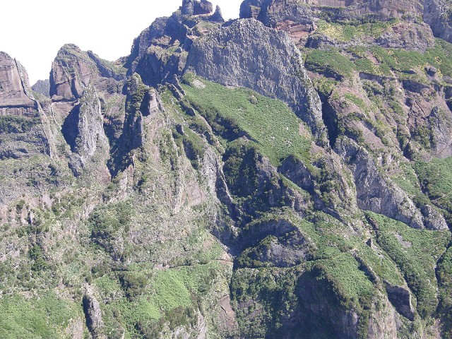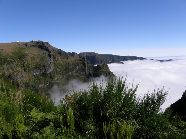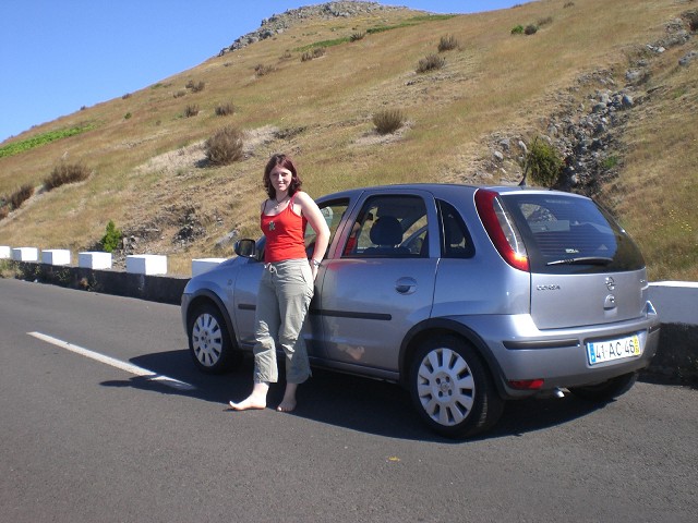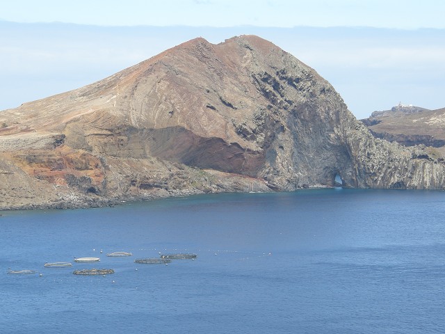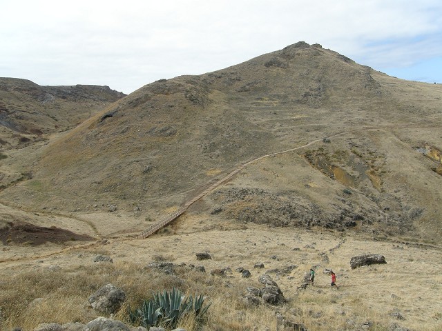 Heute stand unsere erste Wanderung auf dem Plan, denn ab heute hatten wir einen Mietwagen und wollten die Insel erkunden. Mit unserem Opel Corsa fuhren wir zum Pico do Areeiro, von wo wir zum Pico Ruivo wandern wollten. Am Rasthaus deckten wir uns noch mit ein paar Schokoriegeln ein und stiefelten dann los. Zunächst ging es auf einem gepflasterten Weg kontinuierlich den Berg hinab und bald folgten zahllose Treppenstufen, die oft so hoch waren, dass man sie hinab springen musste. Wir dachten jetzt schon mit Bangen an den Rückweg. Zudem war es brütend heiß. Wir waren in Funchal bei geschlossener Wolkendecke losgefahren, aber nun waren wir über den Wolken und die Sonne schien erbarmungslos auf uns hinab. Dennoch marschierten wir 2 Stunden mutig dem Pico Ruivo entgegen. Dann kamen wir an eine Kreuzung und es gab nun 2 Wege zum Ziel. Einen kurzen und einen langen. Wir wählten den langen Weg, in der Hoffnung dass dieser weniger steil sei. Das war ein Fehler, wie wir erst später herausfinden sollten. Schon bald kamen wir wieder an eine steile Treppe, die jedoch diesmal den Berg hinauf führte. Wir fühlten uns alle recht schlapp und pausierten erst einmal. Hans stieg dann die Treppe soweit hinauf, bis er um eine Biegung des Weges sehen konnte. Dort folgten weitere unzählige Treppenstufen und ein Ende war nicht in Sicht. Wir beschlossen daher, lieber umzukehren, da wir ja so oder so noch etwa 3 Stunden bergauf zu Laufen hatten zu unserem Auto auf dem Pico do Areeiro. Wir gingen also zurück und schleppten uns die Treppenstufen wieder den Berg hinauf. Als wir oben ankamen stürmten wir wieder das Rasthaus und tranken erst einmal eine kühle Limo und ein kühles Bier. Die Lebensgeister kehrten langsam in uns zurück und wir fühlten uns schon viel besser. Dann entdeckten wir eine Übersichtskarte mit den Wanderwegen und sahen, dass wir an der Weggabelung einfach nur den kurzen Weg hätten gehen müssen, dann hätte uns ein Tunnel direkt zum Pico Ruivo geführt. Naja, zu spät. Aber dennoch war die Wanderung toll gewesen. Die karge Landschaft hier oben muss man gesehen haben und wenn die Wolkendecke einmal aufreißt, kann man bis nach Funchal und auf das Meer schauen. Da es erst früher Nachmittag war, wollten wir die Insel noch weiter erkunden. Wir fuhren bis Ribeiro Frio, wo wir die Forellenzucht besichtigten. Dann setzten wir unsere Fahrt zur Halbinsel Ponta de São Lourenço fort, die ganz in der Nähe des Flughafens liegt. Dort ist die Landschaft im Gegensatz zum grünen Inselinneren sehr karg. Blanke Felsen wechseln sich mit verdorrtem Gras ab und am Meer brechen sich die Wellen an der schroffen Steilküste. Und dennoch wirkt die Gegend zauberhaft und eindrucksvoll.