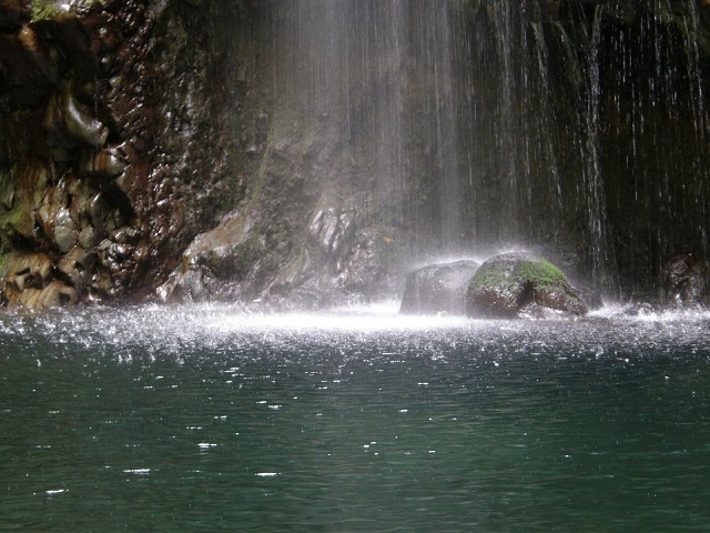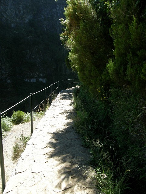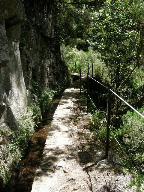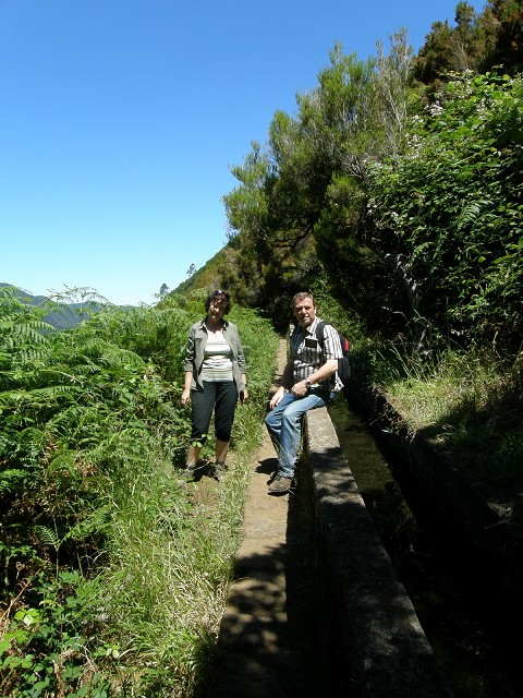Heute wollten wir eine weitere Wanderung unternehmen. Über den Encumeada Pass fuhren wir ins innere der Insel. Hier konnten wir ein besonderes Naturschauspiel beobachten. An einer Bergkante stauten sich die Wolken und rannen wie ein Wasserfall darüber, bevor sie sich schließlich im Nichts auflösten. Einfach toll! In Rabaçal stellten wir dann unser Auto auf einem Wanderparkplatz ab und begannen unsere erste Levada-Wanderung. Die erste, noch recht kurze Levada führte zu einem Wasserfall. Danach folgte ein längeres Stück durch den Urwald, der an etlichen Stellen auch immer wieder den Blick auf die Insel und in Richtung Meer freigab. Die Sonne schien armsdick, doch im Schatten der Bäume war der Weg sehr angenehm zu laufen. Und neben uns gurgelte fröhlich das Wasser in der Levada. Einsam ist man hier nicht gerade, denn auch eine Reihe weiterer Leute wollen diesen Klassiker erkunden. Aber überlaufen ist es glücklicherweise auch nicht. Am Ende des Weges gab es dann einen zweiten Wasserfall zu sehen, wobei man diesmal an dessen Fuße herauskommt und auch die eigenen Füße ins kühle Nass stecken kann. Hier pausierten wir eine Weile und traten dann den Rückweg zum Auto an. Unterwegs ging Margits einer Schuh kaputt, denn die Sohle löste sich langsam und schlappte mit der Zeit immer mehr. Für sie war der Rückweg damit recht beschwerlich und wir kamen langsamer voran. Im Auto hatten wir aber glücklicherweise Wechselschuhe dabei, so dass zumindest der Rest des Tages gerettet war. Wir fuhren weiter bis Porto Moniz, wo es ein super schönes Freibad gibt. Dieses ist in die Lavafelsen der Küste hineingearbeitet und bietet auch ein Sprungbrett ins offene Meer. Dort gingen wir schwimmen und brutzelten noch ein wenig in der Sonne, bevor wir den Rückweg nach Funchal antraten.